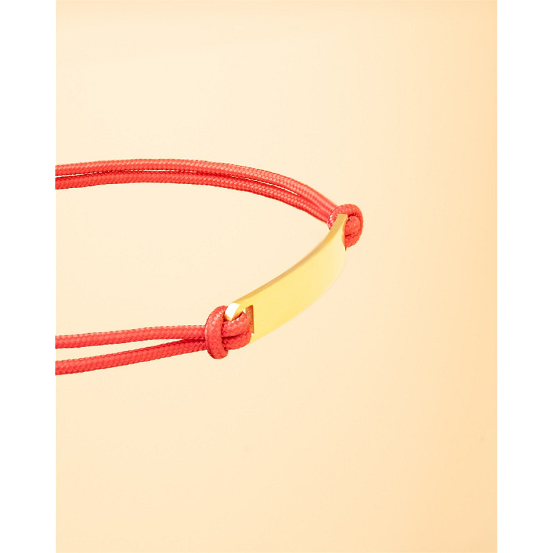 1,5 mm dickes rotes Nylonarmband mit silbernem Edelstahlverschluss und Gravurplatte - Casso Red Gold