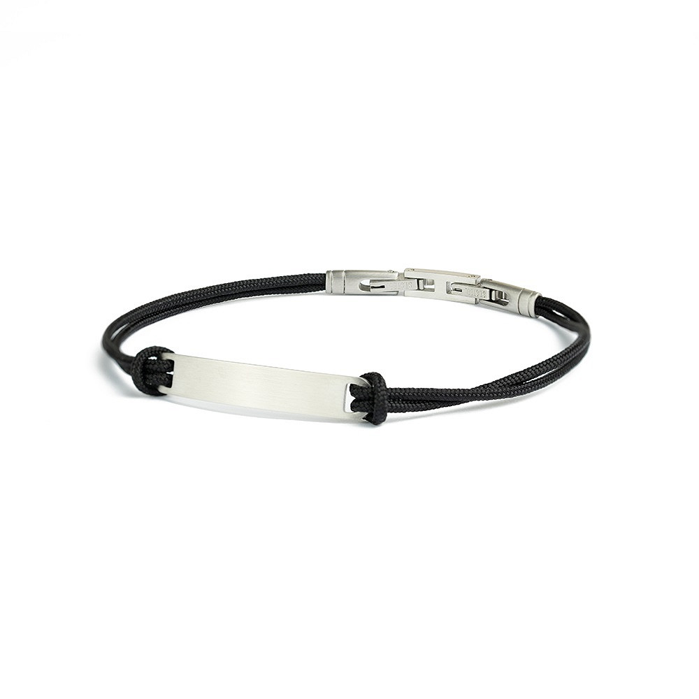 1,5 mm dickes schwarzes Nylonarmband mit silbernem Edelstahlverschluss und Gravurplatte - Casso Black Silver