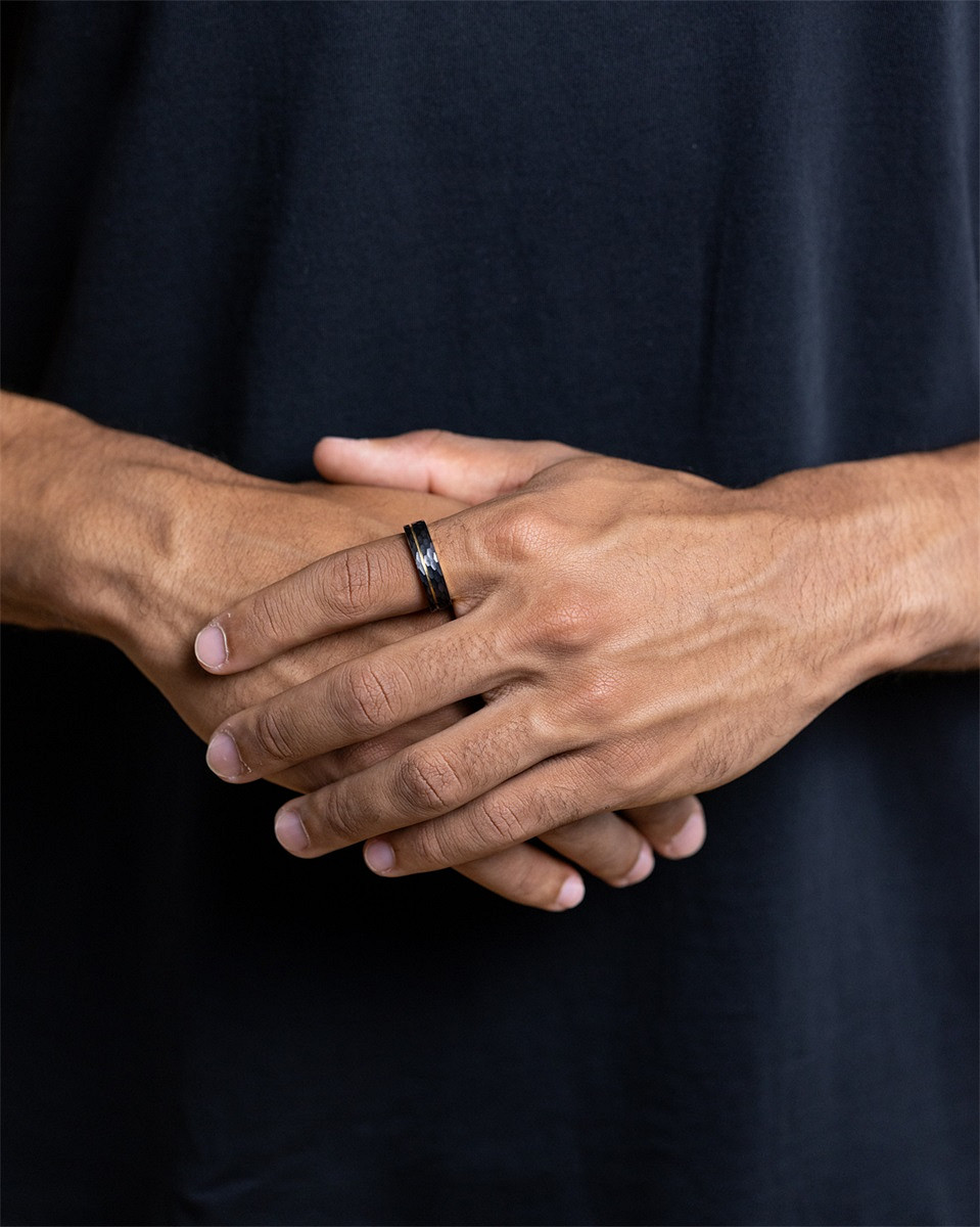 Der Ring hat eine bequeme Passform auf der Innenseite und ist sehr angenehm zu tragen. Aufgrund des leichten Titans können Sie diesen Ring problemlos Tag für Tag tragen. Dieser Ring ist in den EU-Größen 54 bis 72 erhältlich.