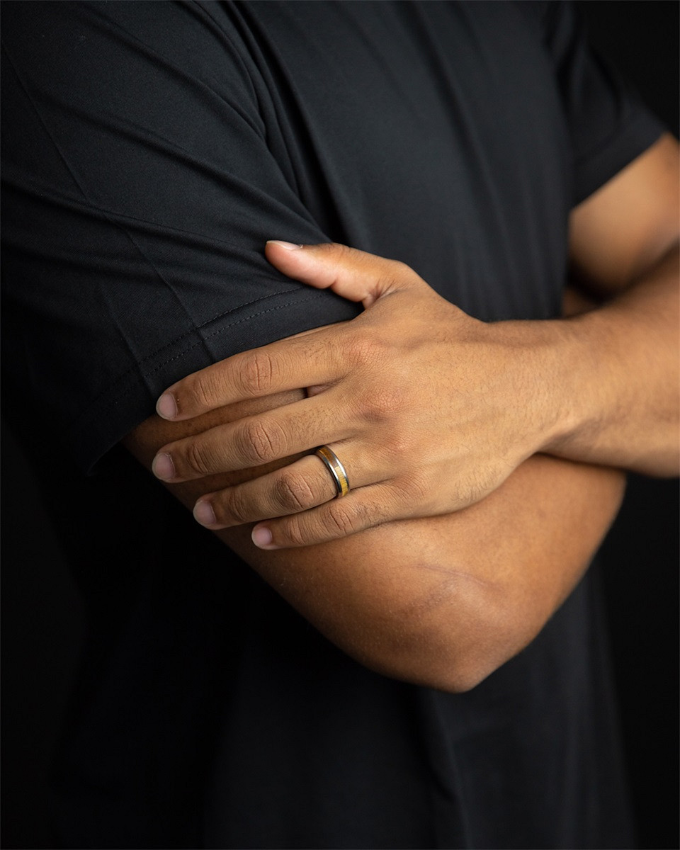 Der Ring hat eine bequeme Passform und ist sehr angenehm zu tragen. Aufgrund des leichten Titans können Sie diesen Ring problemlos Tag für Tag tragen.