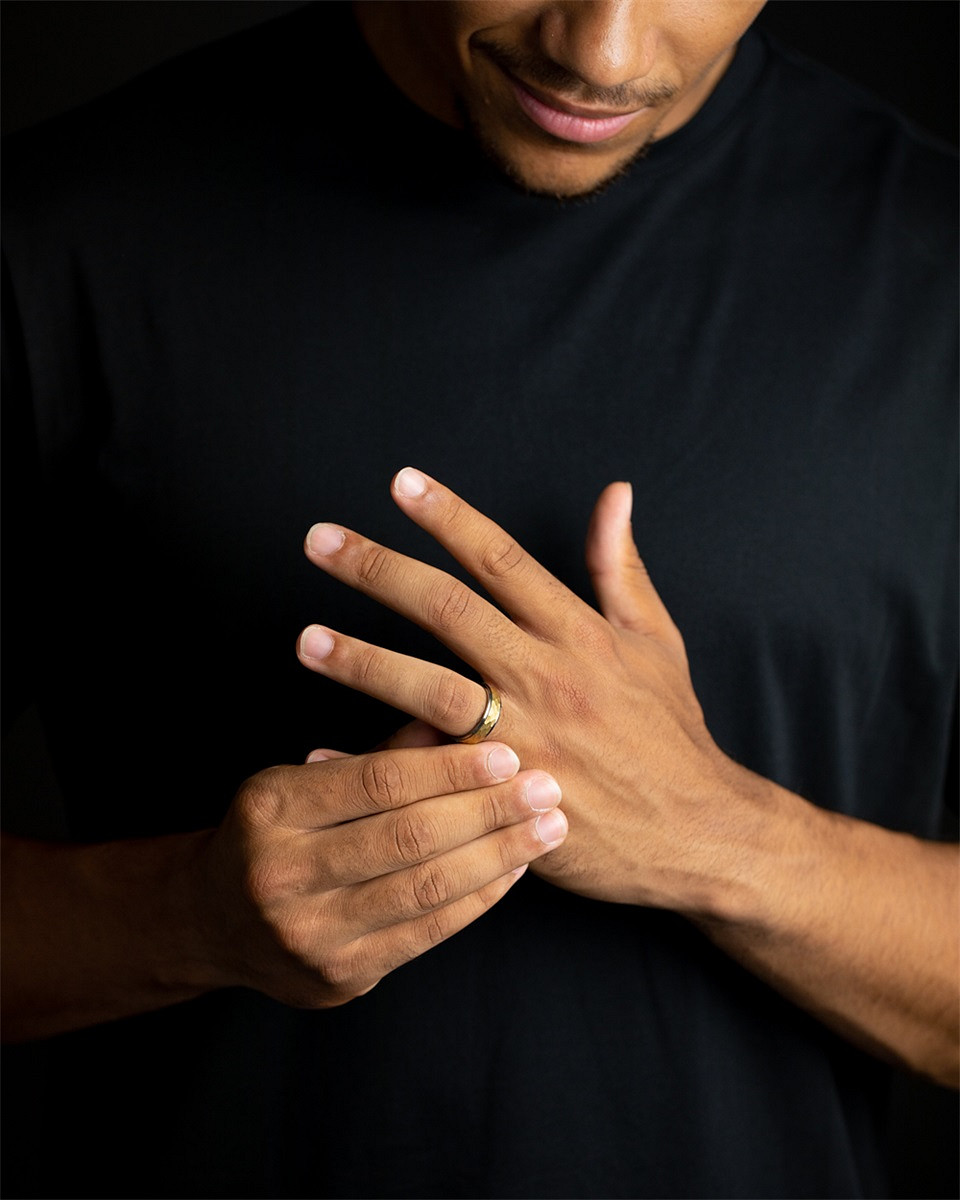 Der Ring hat eine bequeme Passform und ist sehr angenehm zu tragen. Aufgrund des leichten Titans können Sie diesen Ring problemlos Tag für Tag tragen.