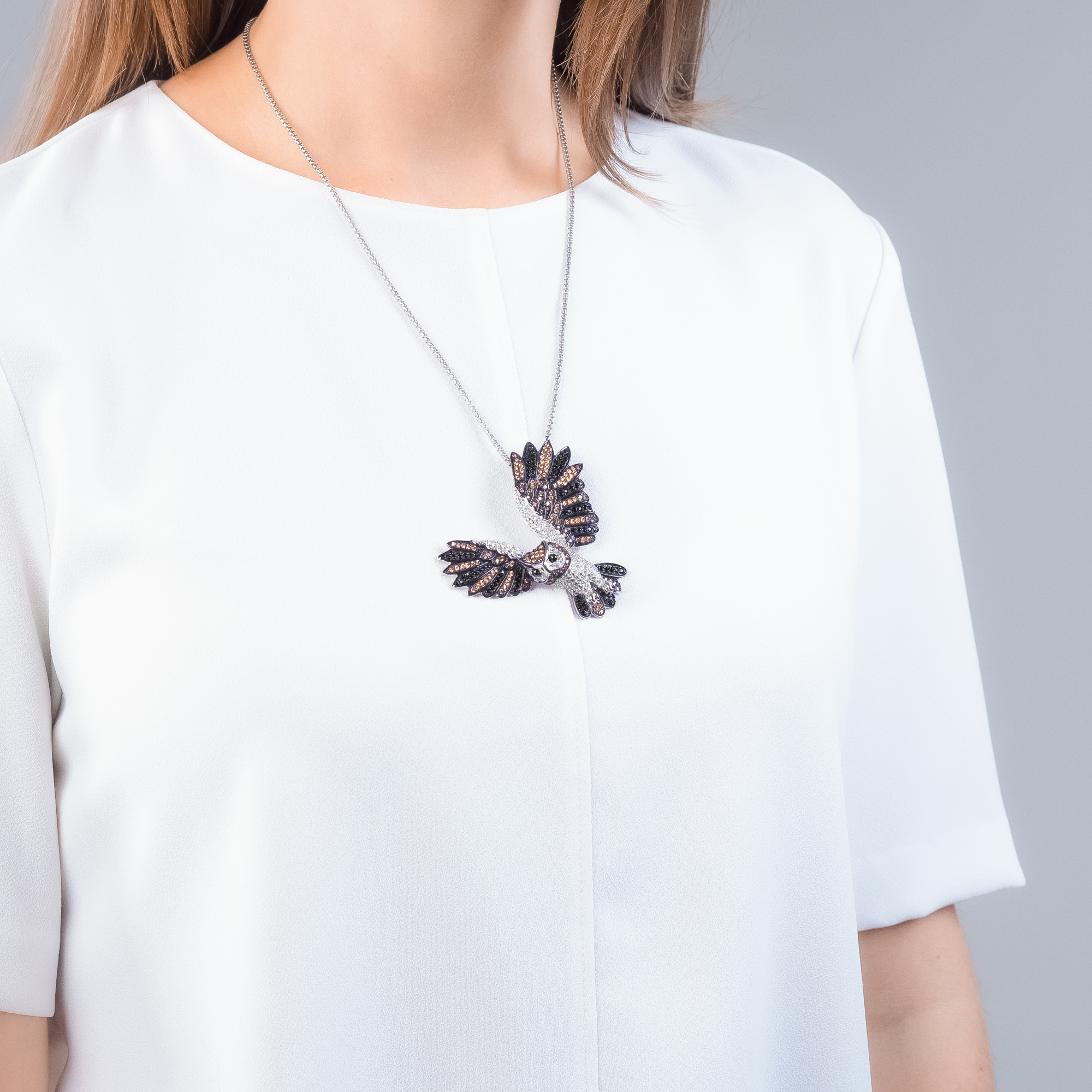 Der Alex Eulen Anhänger ist mehr als nur ein Schmuckstück, er ist eine Hommage an die Eleganz der Natur. Dieses Meisterwerk aus 925 Sterling Silber ist kunstvoll geschwärzt und rhodiniert, um eine perfekte Mischung aus Licht und Dunkelheit zu schaffen. Die Zirkonia-Steine in warmen Brauntönen und leuchtendem Weiß verleihen diesem Anhänger einen Hauch von Luxus. Doch das wahre Highlight sind die geöffneten Flügel der Eule, die den Eindruck erwecken, als ob sie gerade abhebt und majestätisch durch die Lüfte gleitet. Dieses großformatige Statement-Stück ist ideal für diejenigen, die ihre Individualität und ihre Liebe zur Natur betonen möchten. Tragen Sie diesen Anhänger mit Stolz und lassen Sie ihn zu einem Symbol Ihrer Freiheit und Ihres unabhängigen Geistes werden.