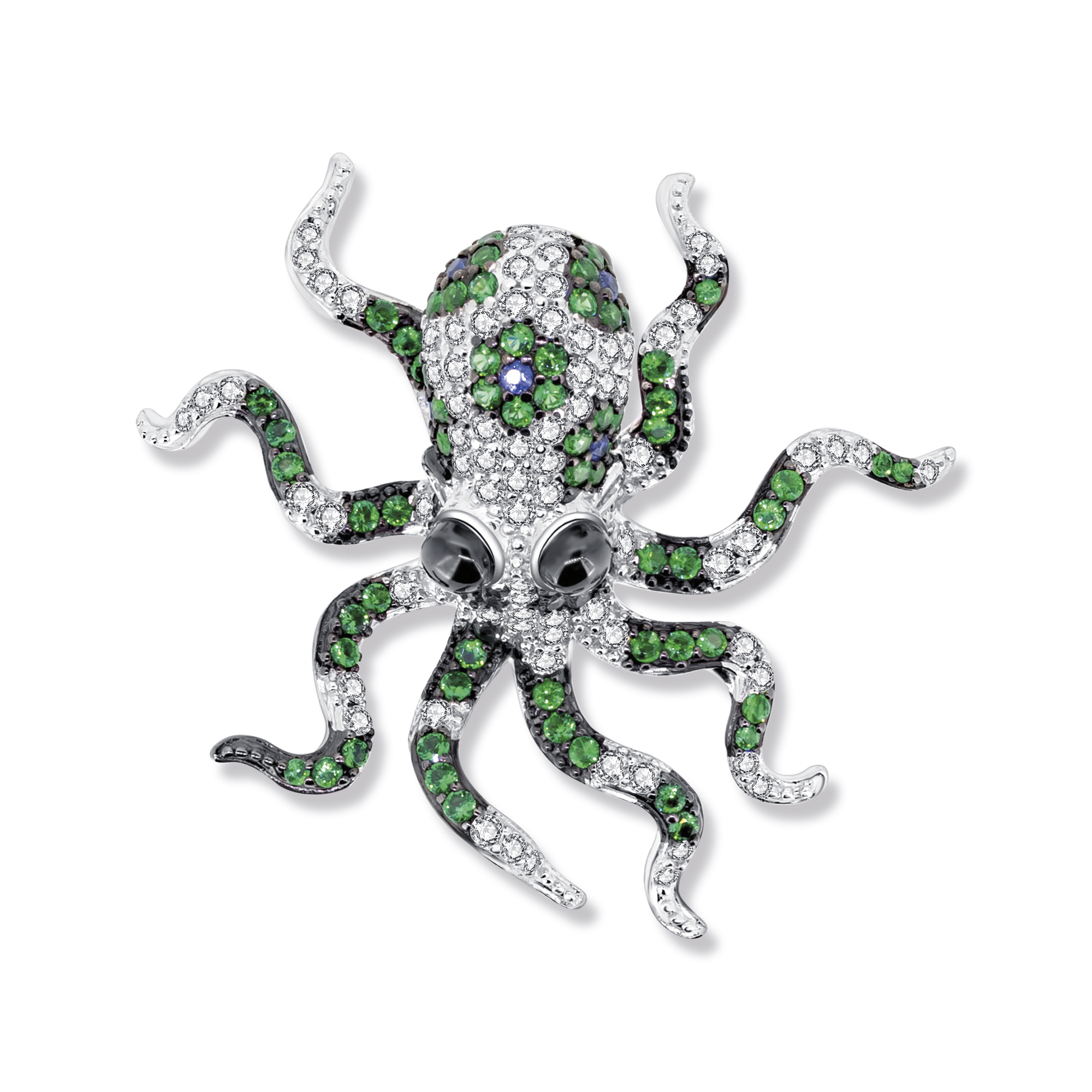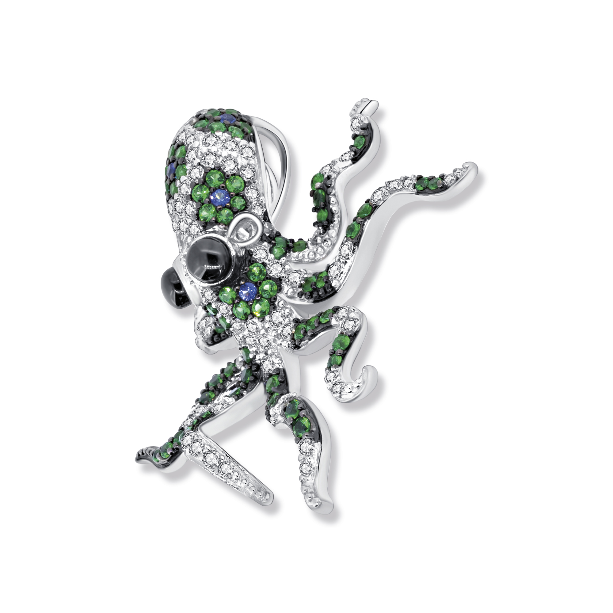 Der Alpi Octopus Anhänger in 925 Sterling Silber ist eine Hommage an die faszinierende Welt des Ozeans. Durch die geschickte Kombination von rhodinierten und geschwärzten Elementen entsteht ein Kontrast, der die Details des Oktopus-Designs hervorhebt. Die grünen und weißen Zirkonia Steine fügen dem Anhänger einen Hauch von Farbe hinzu und repräsentieren die Vielfalt der Meereswelt. Die Zirkonia Steine sind kunstvoll platziert, um die Struktur des Oktopus darzustellen und sein elegant verschlungenes Aussehen zu betonen.
