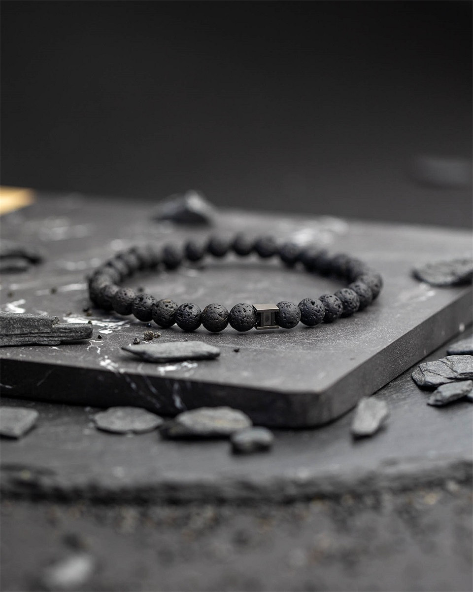 Das schwarze Lava-Armband besteht aus 6 mm großen Lavastein-Perlen. Lavastein gilt als Energieträger, weil er buchstäblich aus dem Mittelpunkt der Erde kommt. Dieser Stein kommt hauptsächlich in Asien vor und wird durch Magma bei Vulkanausbrüchen gebildet. Dieser Stein hat eine beruhigende und heilende Wirkung, die gleichzeitig intensive Energie freisetzt.