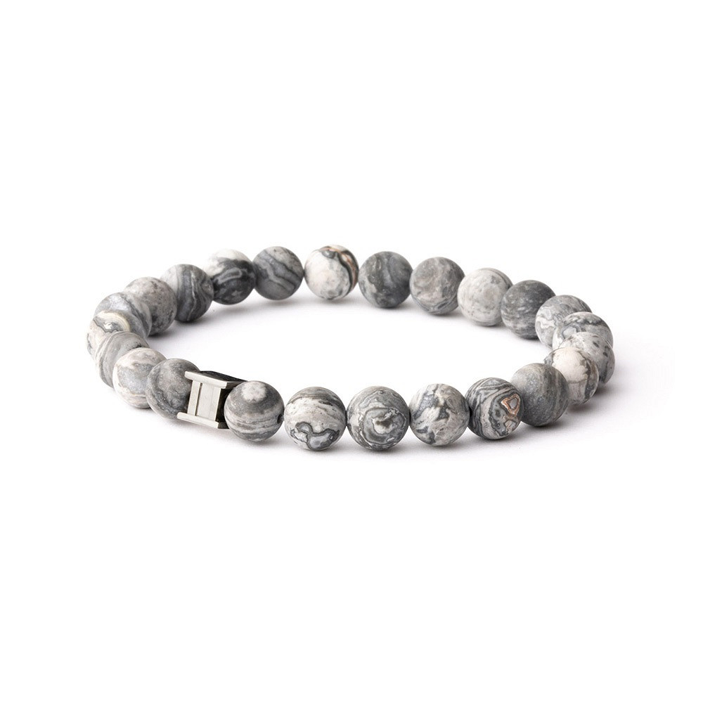 Der Alpha Mat Grey besteht aus Jasper, was auch bedeutet "Spotted und Speckled". Dieser Stein stammt aus Mexiko und ist ein nicht transparenter Stein, der aus mineralischen Ablagerungen von vulkanischer Asche stammt. Es bietet Ausdauer, gibt Ihnen eine zusätzliche Dosis von Energie und hilft Ihnen, Grenzen zu setzen.