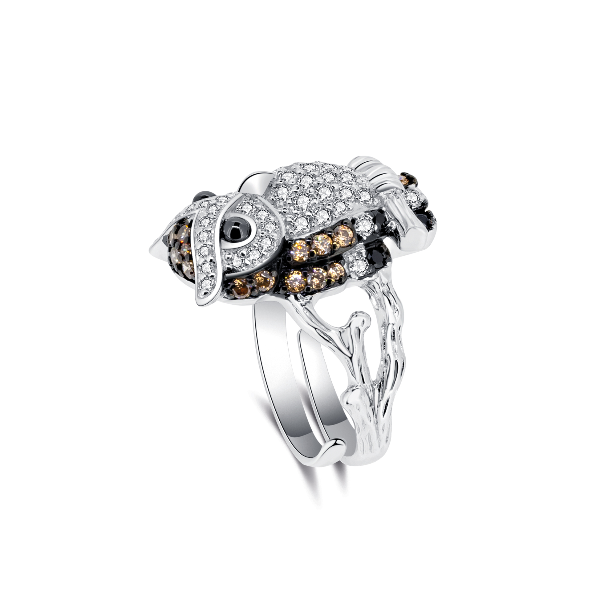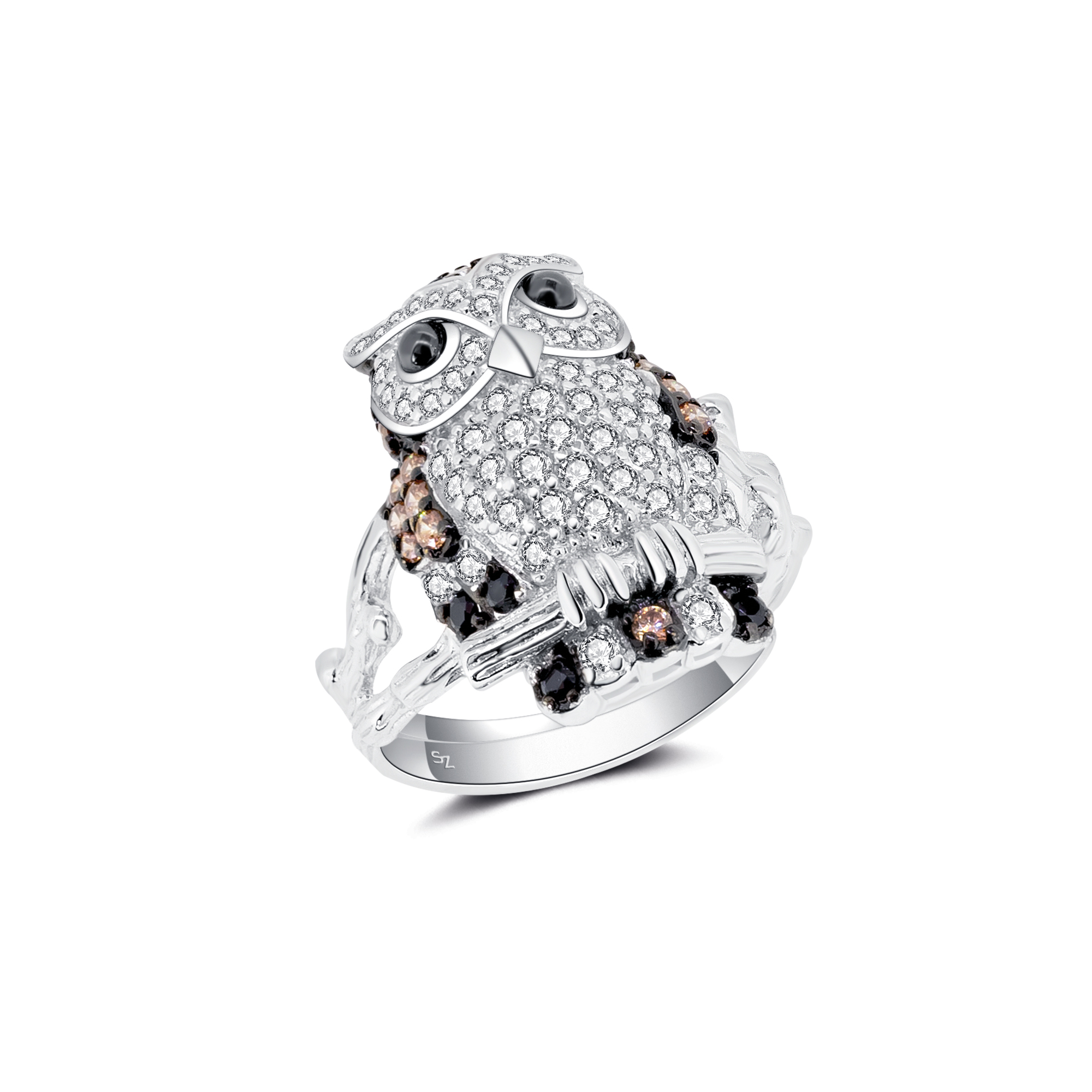 Der Arno Eulen Ring ist eine bezaubernde Kreation, die die Schönheit der Natur und die Eleganz des Designs vereint. Gefertigt aus 925 Sterling Silber, geschwärzt und rhodiniert, ist dieser Ring ein wahres Meisterwerk. Die Zirkonia-Steine in warmen Brauntönen und strahlendem Weiß sind kunstvoll angeordnet und verleihen diesem Ring eine unvergleichliche Brillanz. Doch das Herzstück ist zweifellos die detaillierte Eule, die auf einem Ast sitzt. Diese kleine Kreatur fängt den Zauber des Waldes ein und lässt den Ring zu einem echten Blickfang werden. Die verstellbare Ringschiene sorgt dafür, dass der Ring perfekt an Ihren Finger angepasst werden kann. Tragen Sie den Arno Eulen Ring mit Stolz und lassen Sie sich von seinem Charme verzaubern.