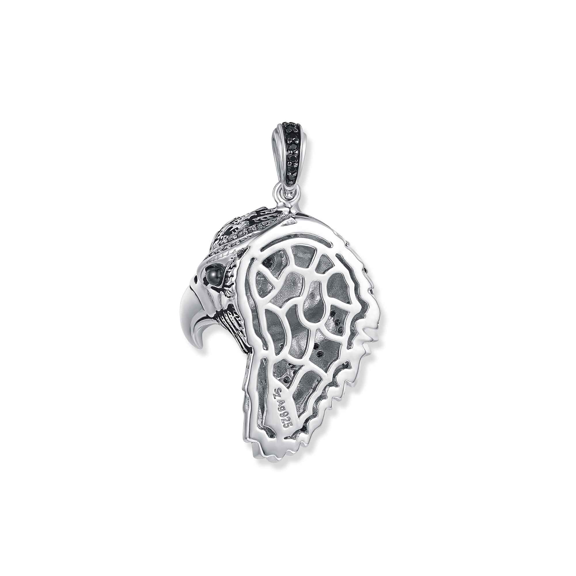 Entdecke den Aaron Adler Anhänger, ein herausragendes Schmuckstück aus hochwertigem Sterling Silber, das durch seine plastische Darstellung eines Adlerkopfes beeindruckt. Verziert mit schwarzen Zirkonia, die dem Anhänger einen geheimnisvollen Glanz verleihen, ist dieser Anhänger sowohl rhodiniert als auch oxidiert (geschwärzt), um eine tiefschwarze, elegante Oberfläche zu erreichen. Der kraftvolle Adlerkopf symbolisiert Stärke und Freiheit und wird durch die präzise Platzierung der Zirkonia-Steine und die Kombination aus rhodiniertem und oxidiertem Silber perfekt in Szene gesetzt. Dieser einzigartige Anhänger ist ein ideales Statement-Stück, das sich hervorragend als Geschenk für Liebhaber von kraftvollen Designs oder als edler Akzent für jeden Anlass eignet. Das robuste Sterling Silber garantiert Langlebigkeit und beständige Qualität, wodurch dieses Schmuckstück eine wertvolle Ergänzung deiner Sammlung darstellt.