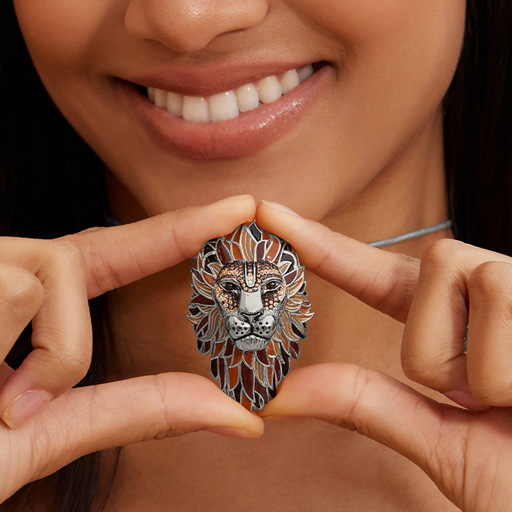 Tauchen Sie ein in die Welt der Eleganz mit unserem rhodinierten Arthur Löwen Anhänger und Brosche, gefertigt aus hochwertigem Silber 925. Diese beeindruckende Kombination aus Anhänger und Brosche vereint Anmut und Vielseitigkeit auf perfekte Weise. Die Rhodinierung verleiht dem Schmuckstück nicht nur einen Hauch von zeitloser Schönheit, sondern betont auch die kunstvoll eingesetzten Details des majestätischen Löwen. Die Mähne des Löwen ist mit Naturtönen Emaille kunstvoll verziert, was dem Accessoire eine charmante Natürlichkeit verleiht. Der Arthur Löwenanhänger und Brosche setzt sich jedoch nicht nur durch seine kunstvolle Gestaltung in Szene. Die funkelnden Zirkonia in den Farben Braun, Weiß und Champagner fügen dem Schmuckstück eine zusätzliche Dimension hinzu, die bei jedem Blick auffällt. Die geschickte Platzierung der Zirkonia betont nicht nur die Kraft des Löwen, sondern verleiht dem Anhänger und der Brosche auch einen Hauch von Glamour und Luxus. Dieses einzigartige Schmuckstück eignet sich nicht nur perfekt für besondere Anlässe, sondern ist auch das ideale Geschenk für jemanden, der Stil, Individualität und handwerkliche Kunst zu schätzen weiß. Lassen Sie sich von der Ausstrahlung dieses rhodinierten Arthur Löwen Anhängers und Brosche verzaubern und setzen Sie ein modisches Statement, das sowohl charmant als auch kraftvoll ist.