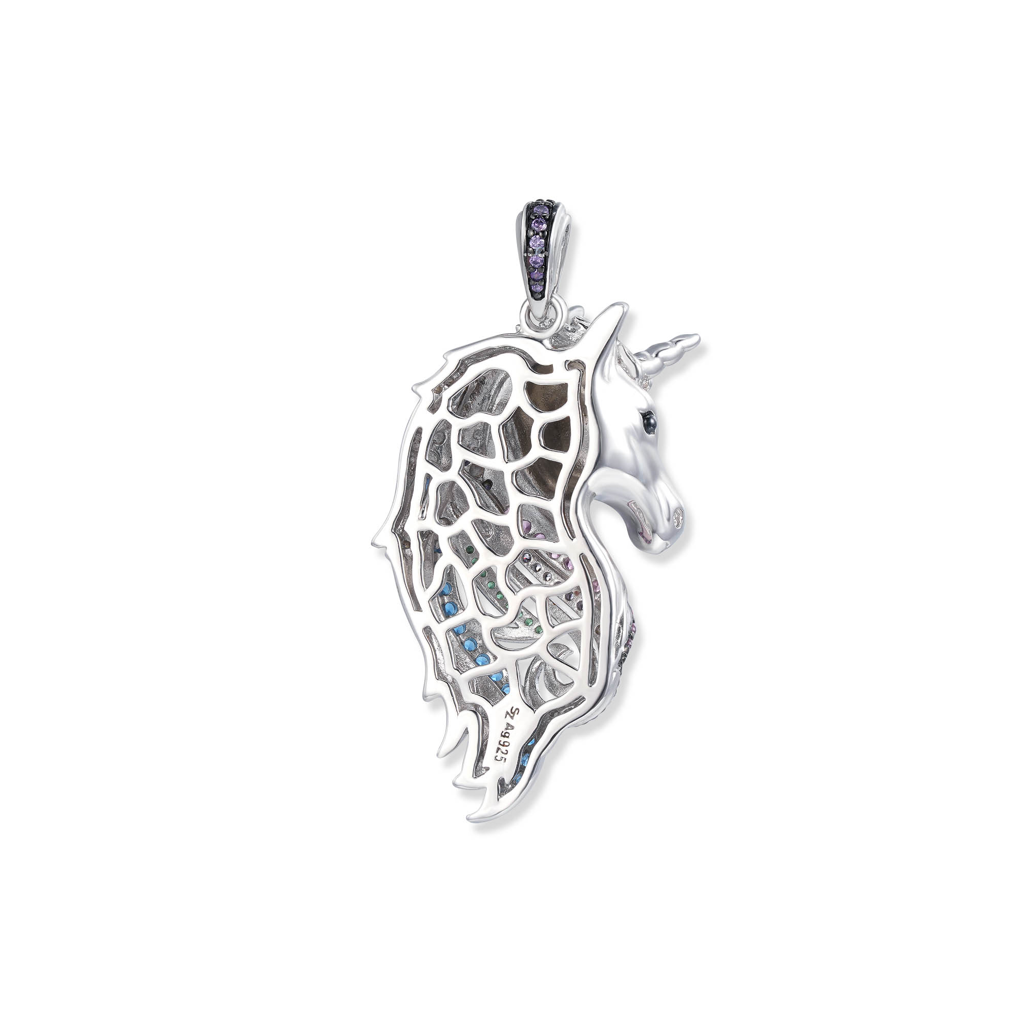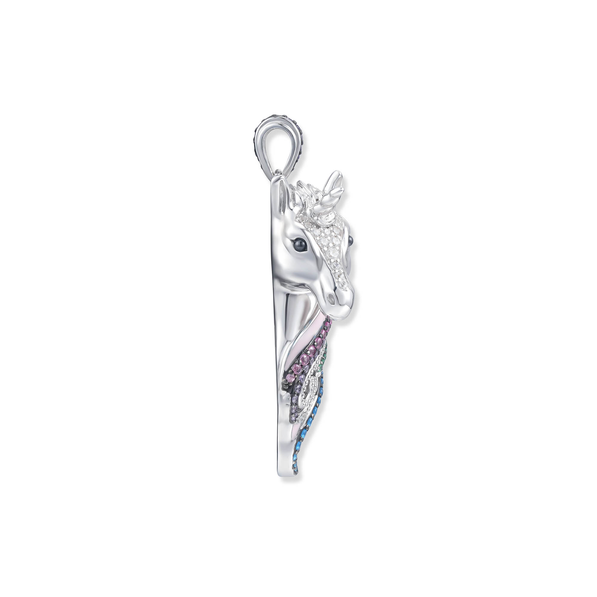 Der Aurelia Einhorn Anhänger aus der SEINERZEIT Dream Kollektion ist ein bezauberndes Schmuckstück, das die Eleganz und Mystik eines Einhornkopfes in einem filigranen Design einfängt. Gefertigt aus 925er Sterling Silber, besticht der Anhänger durch seine geschwungenen Linien und die kunstvolle Darstellung des Einhornkopfes mit fein gearbeiteten Details. Funkelnde Zirkonia in zarten Rosa- und Lilatönen, kombiniert mit bunten Akzenten, verleihen dem Schmuckstück eine magische Ausstrahlung, die die Anmut des Einhorns perfekt unterstreicht. Die grazile Verarbeitung macht diesen Anhänger zu einem stilvollen Accessoire für den Alltag oder besondere Anlässe. Der Aurelia Einhorn Anhänger ist die ideale Wahl für Fantasy-Liebhaber und alle, die ein außergewöhnliches und hochwertiges Schmuckstück suchen. Dank seiner detailreichen Gestaltung und der brillanten Verarbeitung aus Sterling Silber ist er auch ein wunderschönes Geschenk, das die Fantasie anregt und die Trägerin in eine magische Welt entführt.