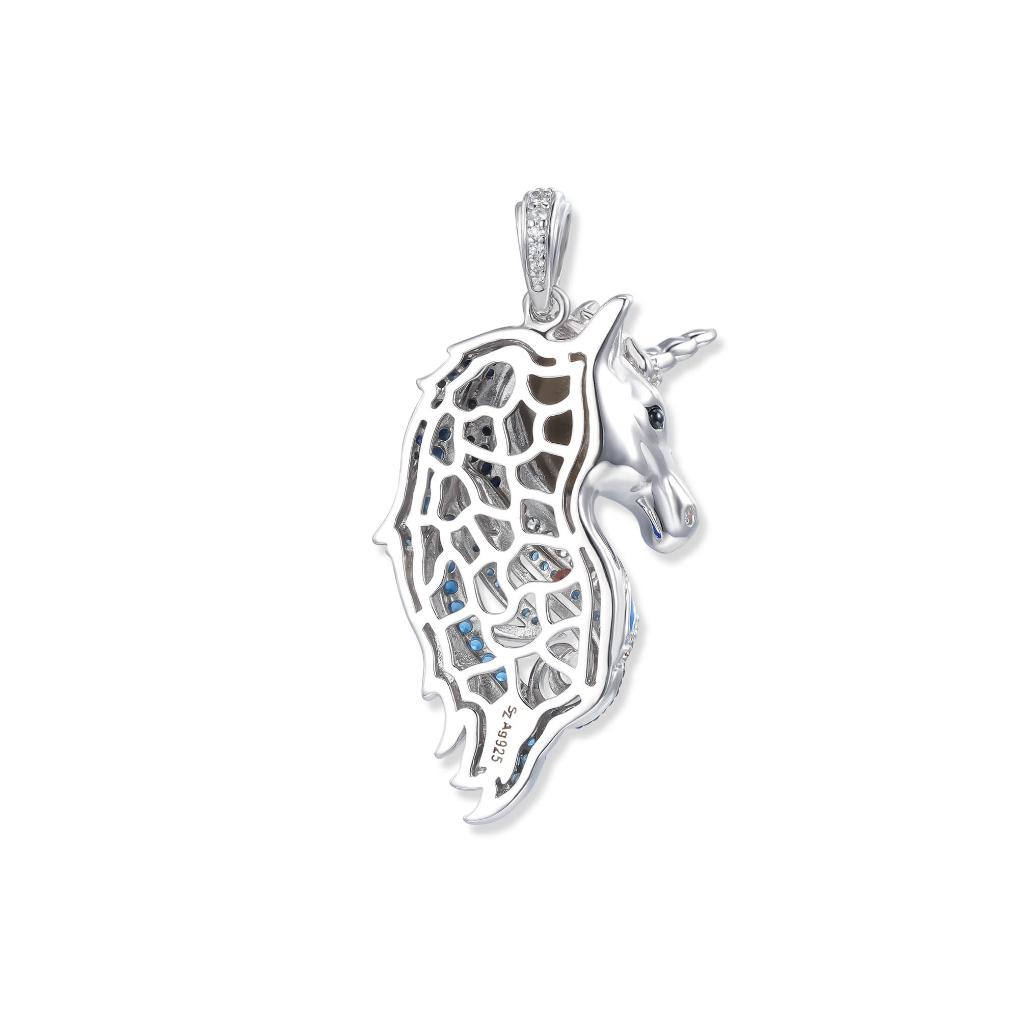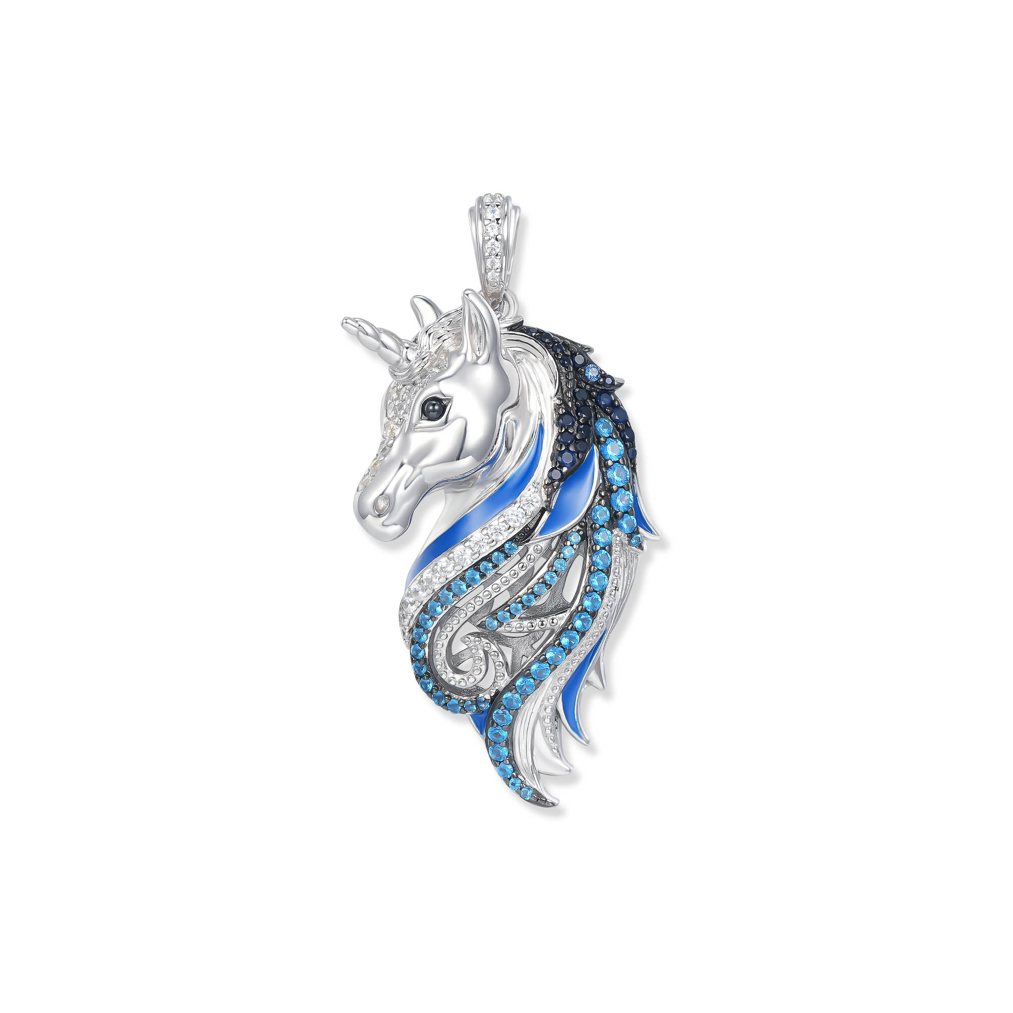 Der Azura Einhorn Anhänger aus der SEINERZEIT Dream Kollektion ist ein märchenhaftes Schmuckstück, das die Eleganz und Magie eines Einhornkopfes mit funkelnden blauen Zirkonia und bunten Akzenten einfängt. Hergestellt aus 925er Sterling Silber, kombiniert dieser Anhänger filigrane Handwerkskunst mit zeitloser Schönheit. Die schimmernden Blautöne der Zirkonia verleihen dem Einhorn eine geheimnisvolle Aura, während die bunten Akzente für einen lebendigen Farbmix sorgen. Die grazilen Linien und die kunstvoll gestalteten Details machen diesen Anhänger zu einem einzigartigen Accessoire, das sich perfekt für den Alltag und besondere Anlässe eignet. Der Azura Anhänger ist Teil der Dream Kollektion, die für träumerische Designs und hochwertige Verarbeitung steht. Dieses Schmuckstück ist nicht nur ein stilvolles Accessoire, sondern auch ein wunderschönes Geschenk für Fantasy-Liebhaber und alle, die die zauberhafte Welt der Einhörner lieben. Mit seiner langlebigen Verarbeitung und funkelnden Details wird der Azura Anhänger garantiert alle Blicke auf sich ziehen und die Fantasie beflügeln.