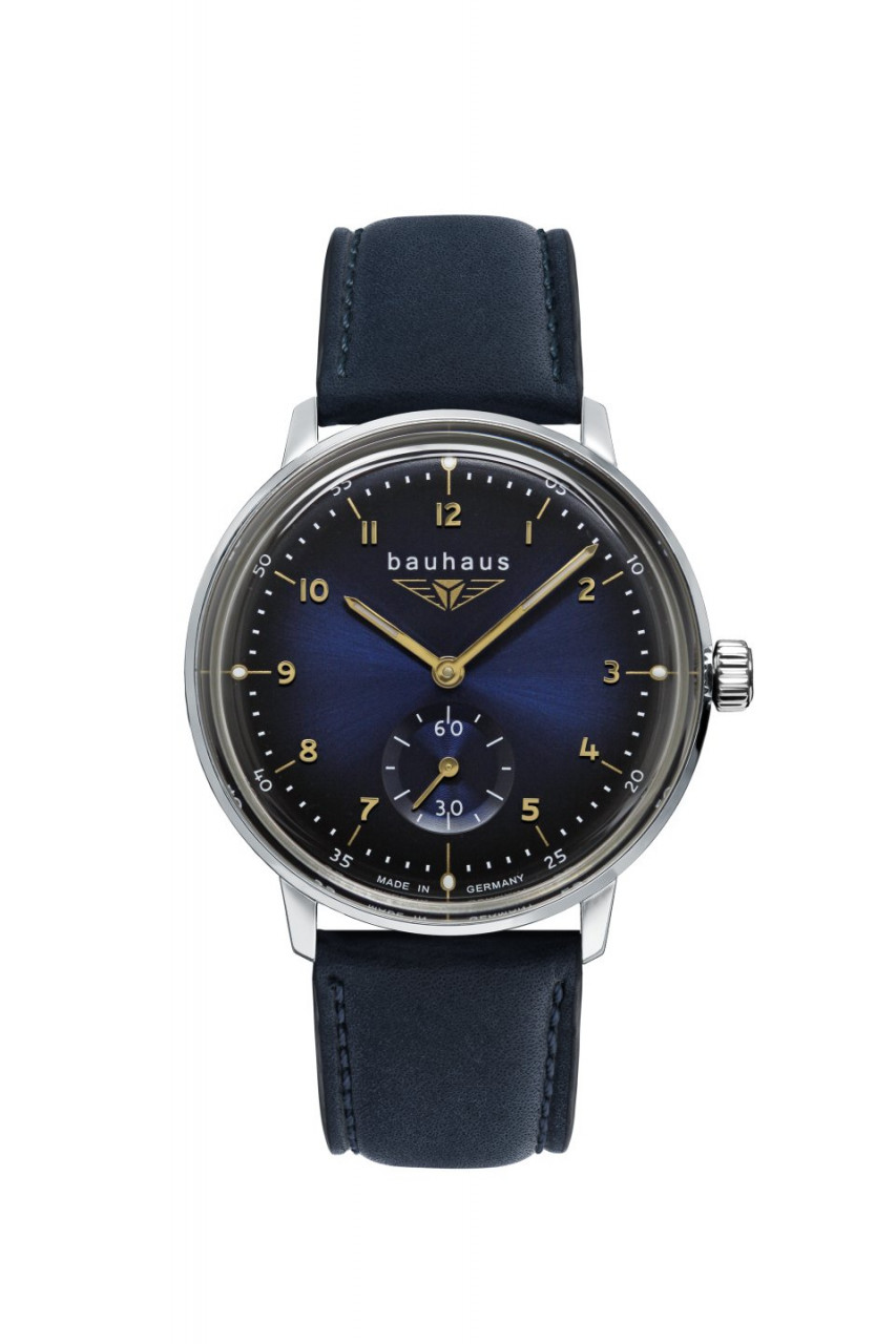 - Nachtblaues Ziffernblatt mit goldenen Zahlen/Indices, Leuchtzeigern, Leuchtpunkten