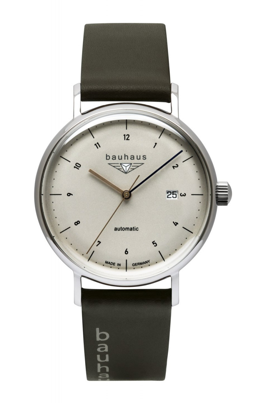 - Beiges Ziffernblatt mit schwarzen Zahlen/Indices
