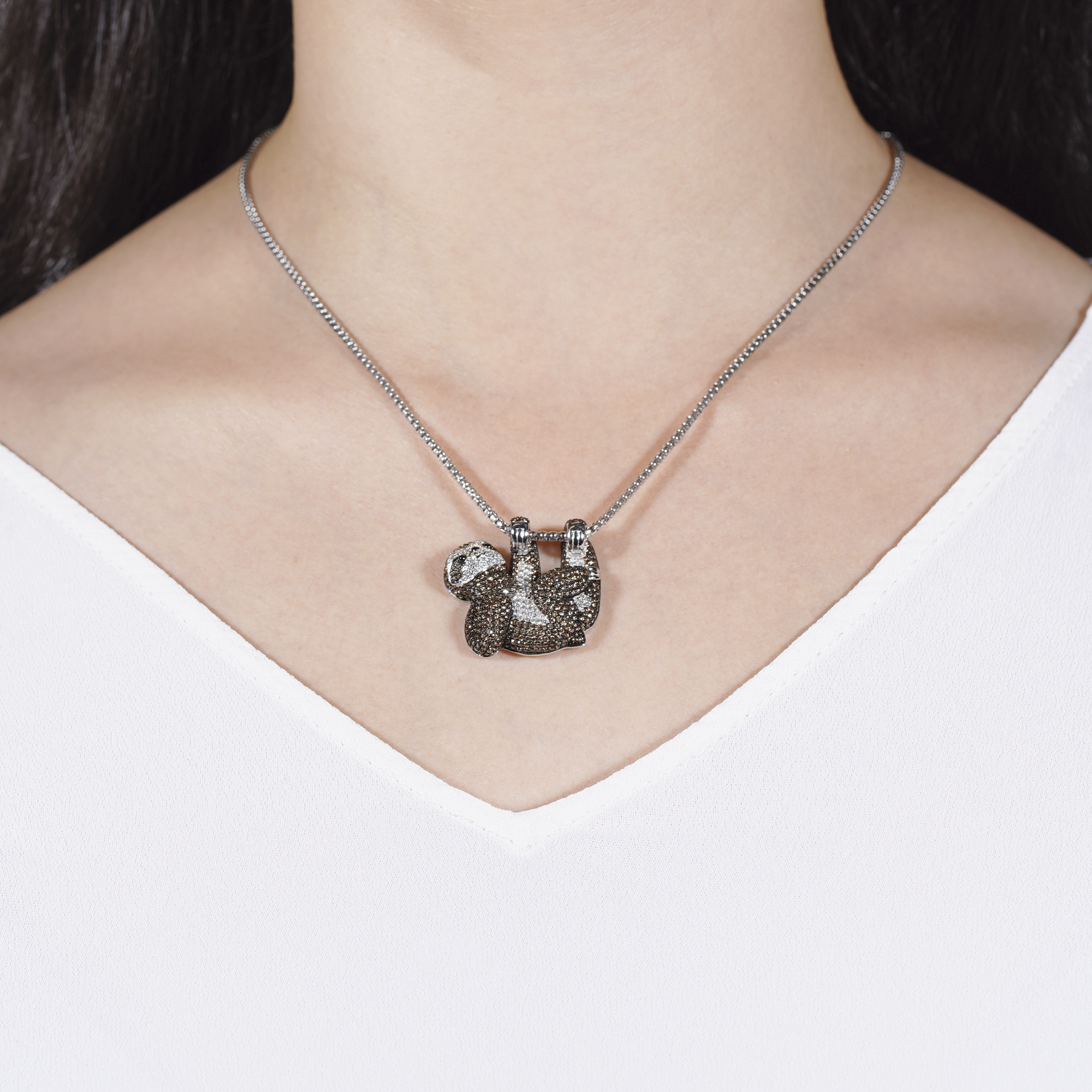 Tauchen Sie ein in die entspannte Welt der Brad Faultier Anhänger. Dieser einzigartige Anhänger wurde mit großer Sorgfalt und Liebe zum Detail aus hochwertigem rhodiniertem Sterling Silber gefertigt. Das Design des Anhängers verkörpert das ruhige und gelassene Wesen des Faultiers, das für seine Gemächlichkeit und Ausgeglichenheit bekannt ist. Die funkelnden braunen und weißen Zirkonia Steine auf dem Anhänger fangen das Licht ein und verleihen ihm einen Hauch von Glanz und Eleganz. Der Anhänger ist nicht nur ein stilvolles Accessoire, sondern auch ein Symbol für Entspannung, Gelassenheit und innere Ruhe. Tragen Sie den Brad Faultier Anhänger mit Stolz und lassen Sie sich von seiner charmanten Ausstrahlung und zeitlosen Schönheit begeistern. Ob als Geschenk für einen geliebten Menschen oder als persönliches Statement, dieser Anhänger wird sicherlich bewundernde Blicke auf sich ziehen und ein Lächeln auf Ihr Gesicht zaubern.