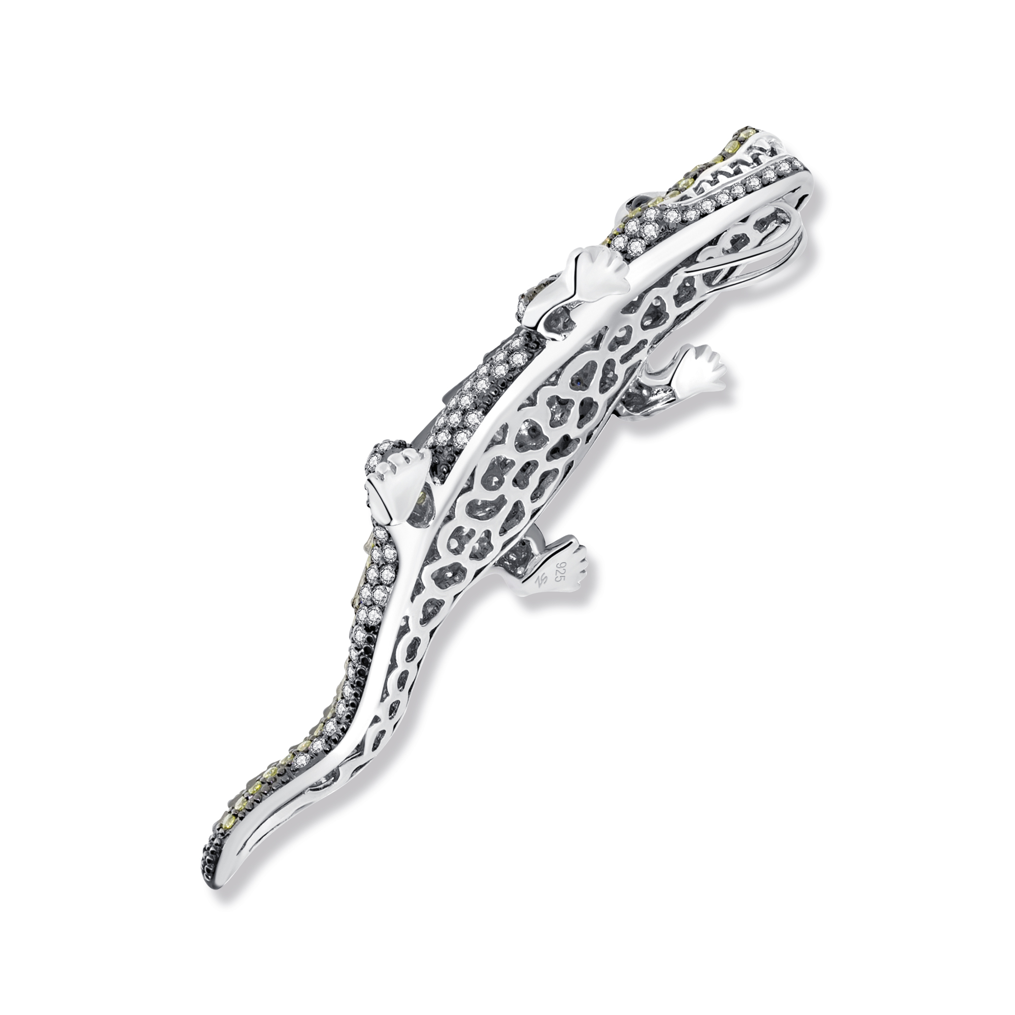 Der Charles Krokodil Anhänger fängt die beeindruckende Anmut und Aura dieser majestätischen Kreatur in einem einzigartigen Schmuckstück ein. Krokodile stehen für Stärke, Mut und Unerbittlichkeit, und dieser Anhänger zelebriert diese Eigenschaften. Hochwertiges 925 Sterling Silber bildet die Grundlage dieses eindrucksvollen Anhängers. Die Rhodinierung verleiht ihm einen zeitlosen Glanz und Schutz. Die geschwärzten grünen Zirkonia Steine, die den Körper des Krokodils zieren, fangen das schimmernde Farbspiel des Tieres in der Natur ein und erzeugen einen Blickfang mit Tiefe und Intensität.