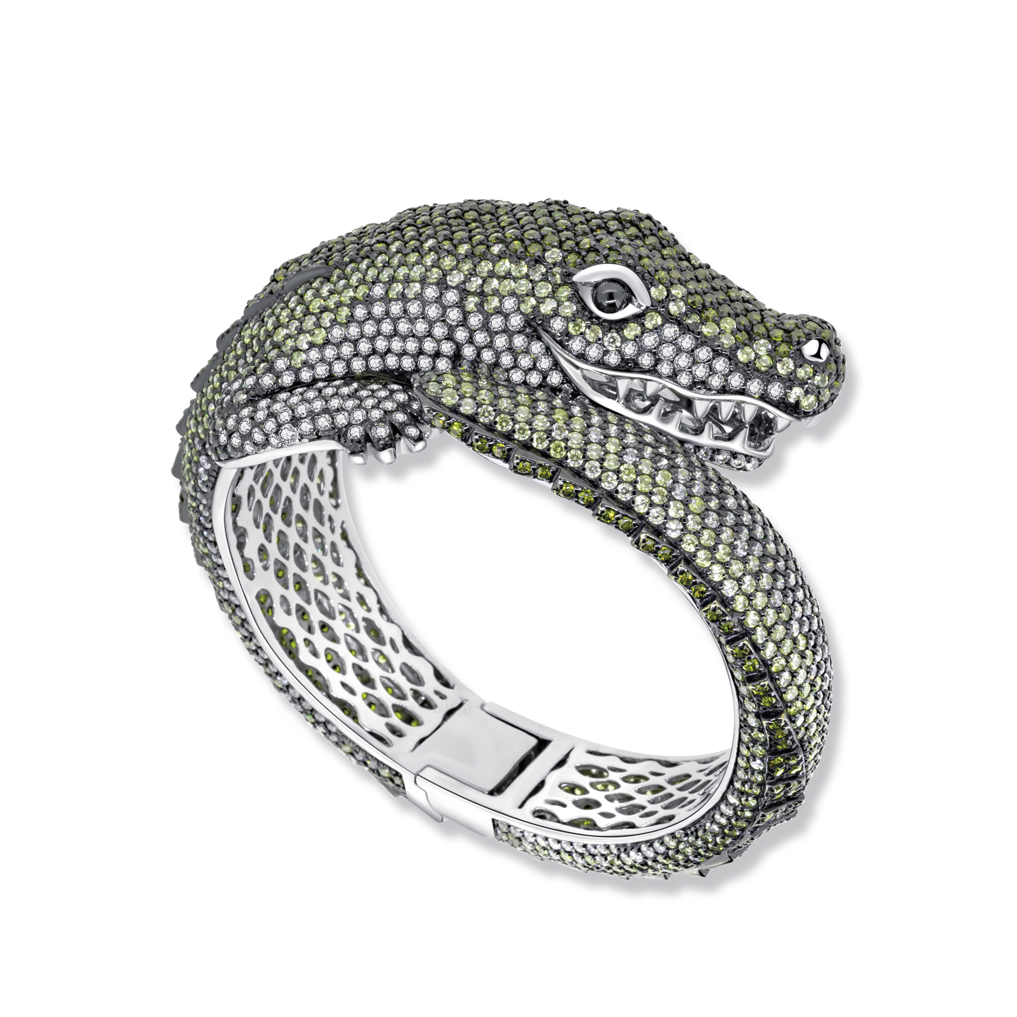 Der Charles Krokodil Armreif ist ein Kunstwerk aus hochwertigem 925 Sterling Silber, das mit rhodinierten und geschwärzten Details veredelt wurde. Die grünen Zirkonia Steine sind kunstvoll eingesetzt und fügen sich nahtlos in das Design des Armreifs ein. Dieser Armreif ist mehr als nur ein Schmuckstück - er ist ein Ausdruck von Stärke und Eleganz. Das Krokodil, ein Symbol für Widerstandsfähigkeit und Durchsetzungsvermögen, wird hier zu einem kraftvollen Statement. Der grüne Farbton der Zirkonia Steine verleiht dem Armreif eine markante Ausstrahlung und zieht bewundernde Blicke auf sich. Tragen Sie den Charles Krokodil Armreif als Hingucker zu besonderen Anlässen oder als Ausdruck Ihrer Persönlichkeit im Alltag. Dieser Armreif erinnert daran, dass Schmuck nicht nur Accessoire ist, sondern auch eine Möglichkeit, Ihre Individualität auszudrücken.