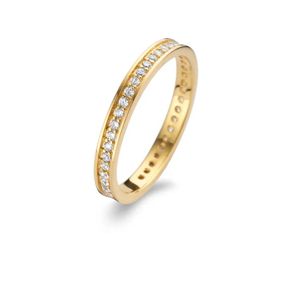 Dieser elegante Ring aus der Chic-Serie ist mit polierten Seiten aus vergoldetem Sterlingsilber gefertigt. Der Ring misst 2 mm und ist mit einer Reihe von weißen, facettengeschliffenen Zirkonia auf der Oberseite besetzt. Die Ringe der Chic-Serie sind gleichzeitig individuell, aber auch so konzipiert, dass sie mit anderen Ringen kombiniert werden können, was einzigartige Kombinationen und einen persönlicheren Ausdruck ermöglicht.