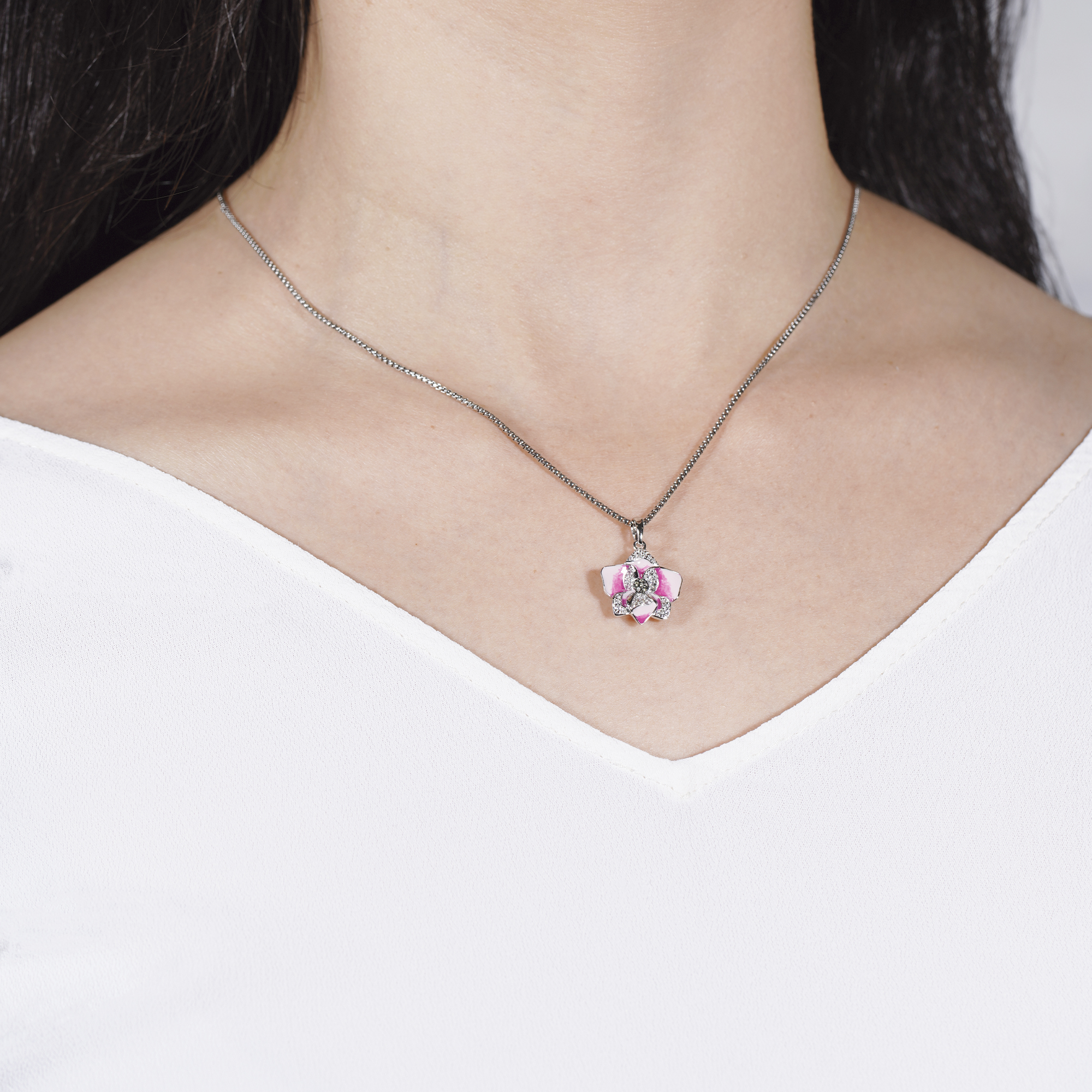 Der Cynthia Orchideen Anhänger ist eine Huldigung an die Anmut und Faszination der Orchideenblüte. Die pink und rosa Emaille zaubern eine lebendige, aufgeblühte Orchideenblüte, die die zarte Schönheit der Natur einfängt. Einige Blätter sind mit weißen und rosa Zirkonia verziert, die ein dezentes Funkeln verleihen. Die Mitte der Blume wird von strahlenden gelben Zirkonia geziert, die einen Hauch von Sonnenschein einfangen. Dieses Schmuckstück symbolisiert nicht nur die Schönheit der Orchidee, sondern auch die Vielfalt der Natur. Tragen Sie den Cynthia Orchideen Anhänger und tragen Sie die Eleganz und Anmut der Natur bei sich. Unsere Kunden bestätigen, dass dieser Anhänger eine Verbindung zur Naturschönheit herstellt und gleichzeitig eine subtile Eleganz ausstrahlt. Dieser Anhänger ist nicht nur Schmuck, sondern ein Ausdruck Ihrer Bewunderung für die zauberhafte Welt der Blumen. Kombinieren Sie ihn mit Ihrer Garderobe, um einen Hauch von Naturschönheit in Ihren Alltag zu bringen.
