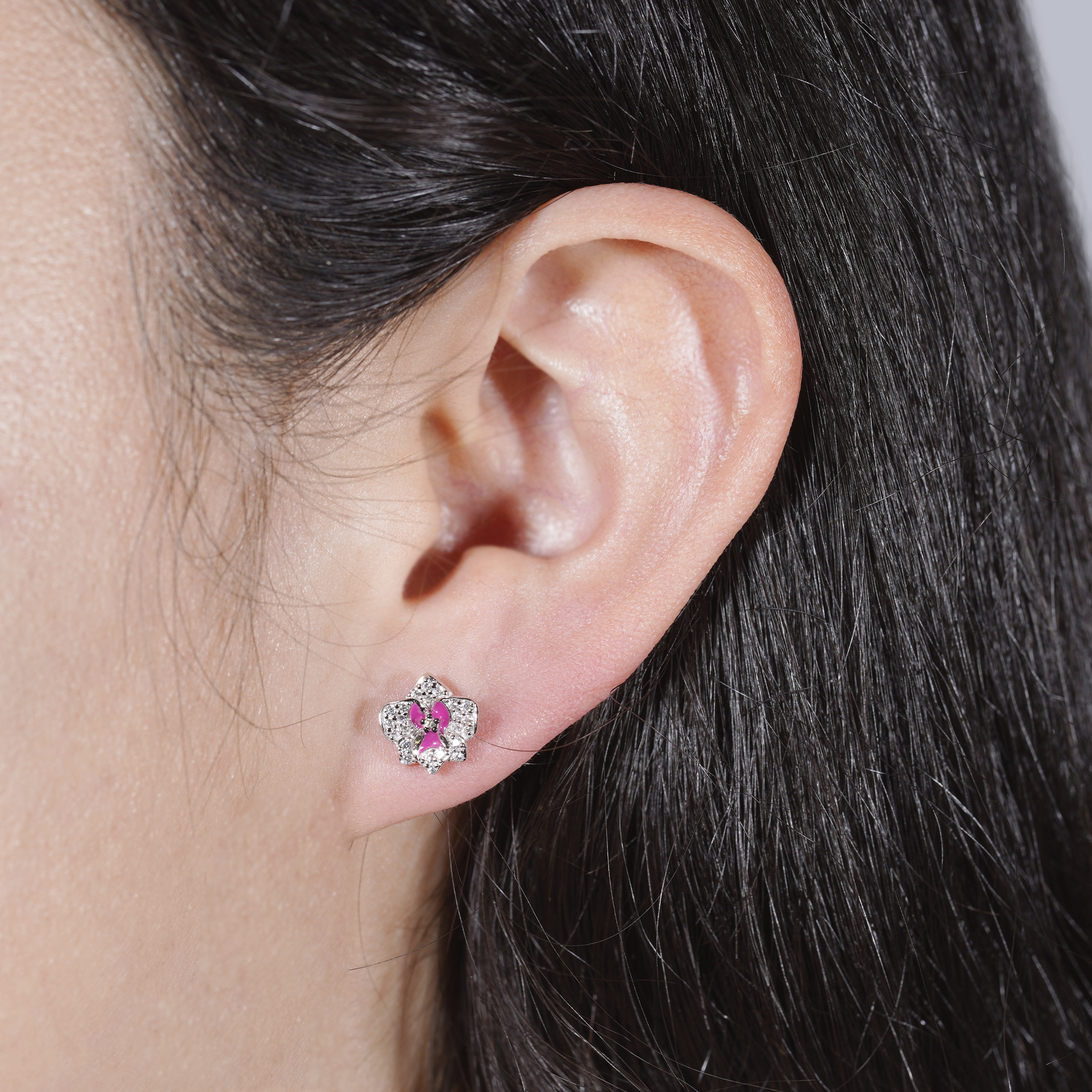 Die Cynthia Orchideen Ohrringe sind die perfekte Ergänzung zum zugehörigen Anhänger und spiegeln die Anmut der Orchideenblüte wider. Die pink und rosa Emaille zaubern blühende Orchideen, die die zarte Schönheit der Natur einfangen. Diese Ohrstecker sind wie kleine Kunstwerke, die Ihre Ohren schmücken. Ihre subtile Größe und ihr elegantes Design machen sie zu einem vielseitigen Schmuckstück für jeden Tag. Diese Ohrringe sind nicht nur ein Accessoire, sondern ein Statement Ihrer Bewunderung für die Naturschönheit. Tragen Sie die Cynthia Orchideen Ohrringe und bringen Sie die zauberhafte Welt der Blumen in Ihre Alltagsgarderobe. Unsere Kunden bestätigen, dass diese Ohrringe eine Verbindung zur Naturschönheit schaffen und gleichzeitig subtile Eleganz ausstrahlen. Sie sind der perfekte Begleiter für besondere Anlässe und den Alltag gleichermaßen. Kombinieren Sie sie mit dem zugehörigen Anhänger, um ein vollständiges Set der Orchideenpracht zu erleben.