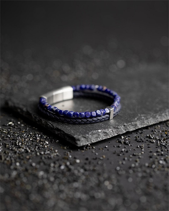 Das für diesen Double Blue verwendete blaue Leder ist wirklich außergewöhnlich: Es wird in der Toskana, Italien, von Hand gewebt. Sie werden den Unterschied zu jeder Lederart, die Sie jemals ausprobiert haben, deutlich spüren. Das Armband ist mit 4 mm Sodalith-Steinen veredelt. Dieser Stein besteht aus einem eher seltenen Mineral, das für seine blaue bis violettblaue Farbe bekannt ist. Manchmal ist es durch weiße Adern oder Flecken gekennzeichnet, die durch den Stein verlaufen. In Gegenwart dieses Natursteins wird Ihr Selbstbewusstsein gestärkt und Ihr Selbstwertgefühl verbessert.