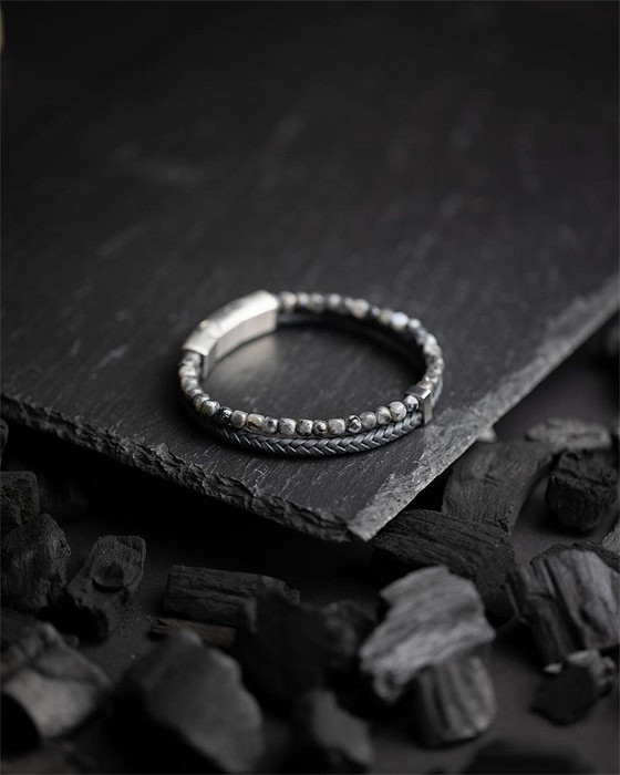 Das graue Leder, das für diesen Double Grey verwendet wird, ist wirklich außergewöhnlich: Es wird in der Toskana, Italien, handgewebt. Sie werden den Unterschied zu jeder Lederart, die Sie jemals ausprobiert haben, deutlich spüren. Das Armband ist mit 4 mm Larvikit-Steinen veredelt aus Norwegen. Dieser Stein ist ideal, um sich vor schlechten Einflüssen zu schützen, Dinge aus einer höheren Perspektive anzugehen und gibt dem Körper seine Kraft und Vitalität zurück.