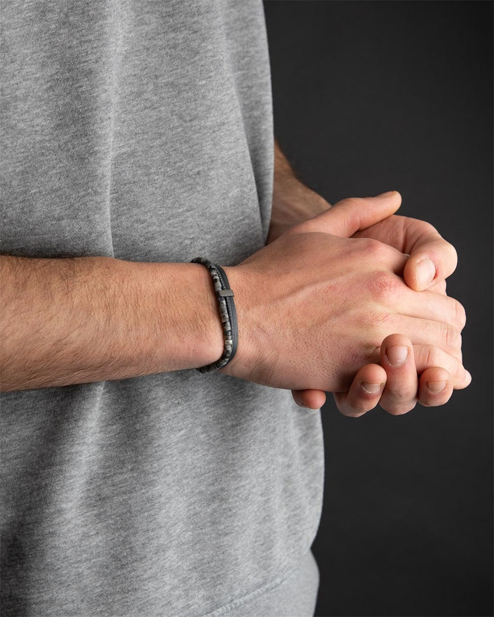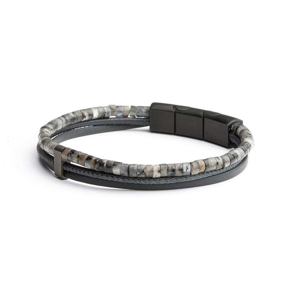 Das Triplux Grey Luxusarmband ist aus echtem italienischem Nappaleder und dezenten 2 mm Larvikit-Steine aus Norwegen. Dieser Stein ist ideal, um sich vor schlechten Einflüssen zu schützen, Dinge aus einer höheren Perspektive anzugehen und gibt dem Körper seine Kraft und Vitalität zurück.