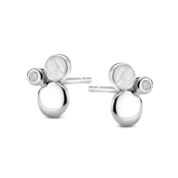 Der Emma Ohrstecker ist mit einem funkelnden Zirkonia-Stein geschmückt, der Glanz und Eleganz verleiht. Emma ist auch mit einer Kombination aus glatten und matten Oberflächen gestaltet, um einen Kontrast zwischen dem rohen und dem femininen zu schaffen. Der Ohrring besteht aus recyceltem 925er Sterlingsilber und misst 0,7 cm.