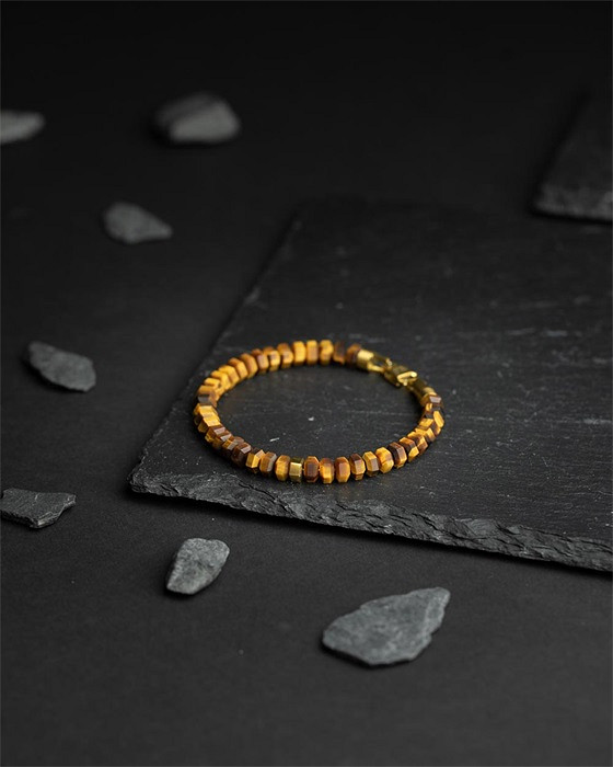 Das Octo Tiger Armband ist eines der Prunkstücke unserer Kollektion. Die achteckigen Natursteine für dieses Armband werden von professionellen Handwerkern von Hand bearbeitet. Das Armband ist mit Titan, Stahl und einer 18-karätigen Vergoldung versehen. Die verschiedenen Elemente gehen nahtlos ineinander über und machen dieses Armband zu einem weltweit einzigartigen Armband. Dieses Armband besteht aus Tigerauge-Steinen, die oft als Kriegerstein bezeichnet werden. Es ist ein kraftvoller Stein, der Sie vor negativen äußeren Einflüssen schützt. Außerdem soll es Mut, Kraft und Ausdauer steigern.