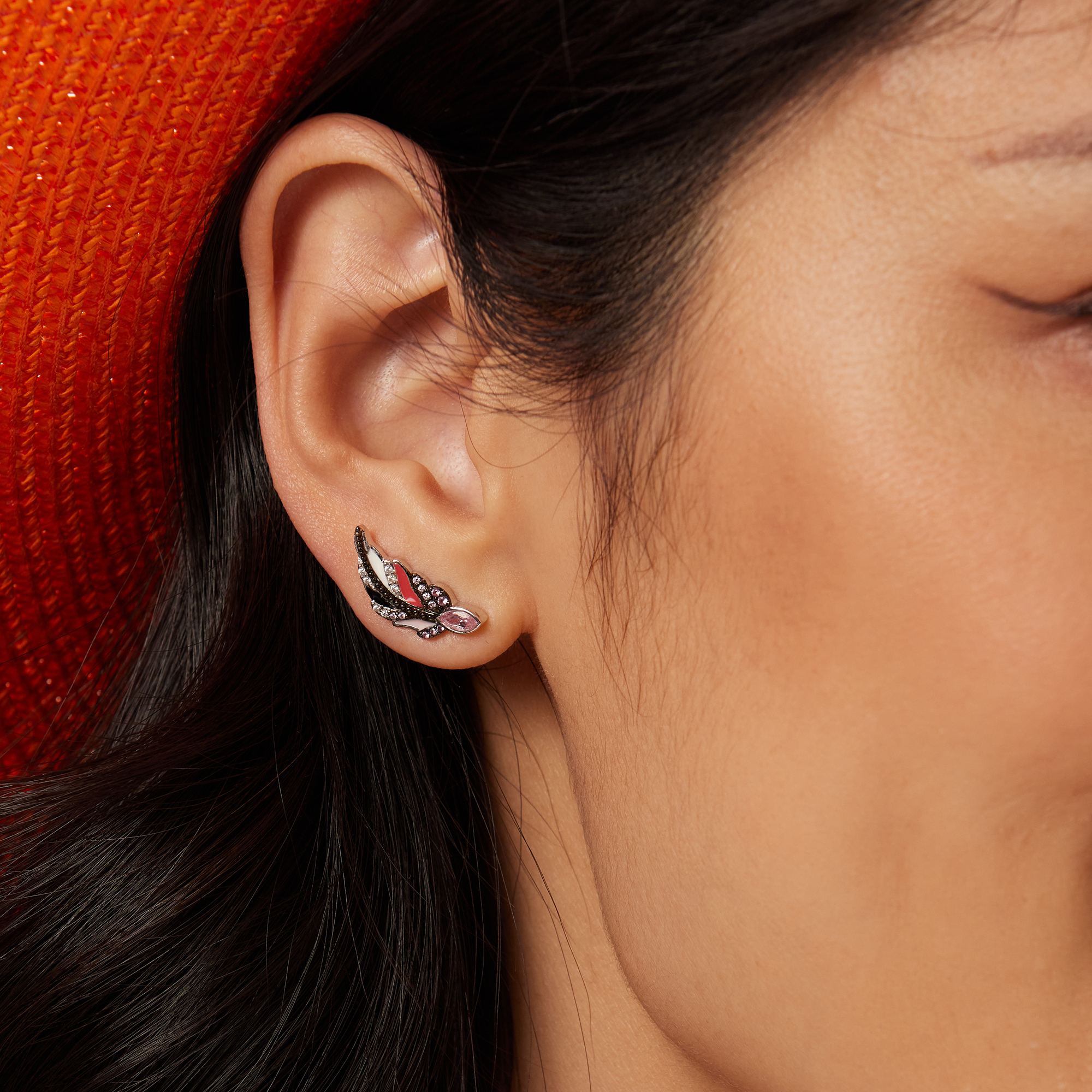 Die Fabio Flamingo Ohrstecker sind nicht nur Schmuck, sondern kunstvolle Ausdrücke von Eleganz und Verspieltheit. Diese rhodinierten Ohrstecker, gefertigt aus hochwertigem Silber 925, präsentieren sich in der Form von Flamingo-Federn, die Ihrem Look eine subtile, aber beeindruckende Dimension verleihen. Die schwarze Emaille auf den Ohrsteckern betont die grazile Silhouette der Federform, während die Fuchsia Emaille eine lebendige und auffällige Farbnote hinzufügt. An den Federspitzen setzen Pink Zirkonia im Marquise-Schliff funkelnde Akzente, die die Aufmerksamkeit auf das Detail und die Feinheit der Gestaltung lenken. Diese kleinen, aber feinen Fabio Flamingo Ohrstecker sind perfekt für den täglichen Gebrauch geeignet und eignen sich ebenso gut für besondere Anlässe. Tragen Sie diese Ohrstecker mit Stolz und lassen Sie sie zu einem Ausdruck Ihrer Persönlichkeit werden – eine gelungene Mischung aus Eleganz und verspielter Raffinesse.
