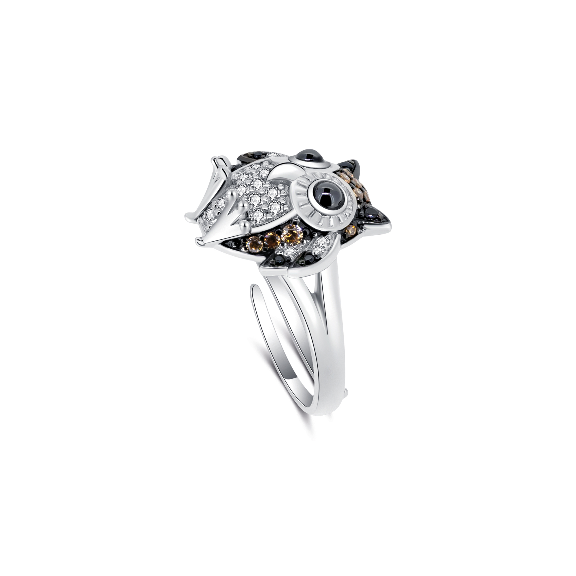 Erwecken Sie Ihren Sinn für Stil und Natur mit dem Finn Eulen Ring. Dieses einzigartige Schmuckstück aus feinstem 925 Sterling Silber ist ein Kunstwerk für Ihren Finger. Der Ring ist mit funkelnden Zirkonia-Steinen in den Farben braun und weiß besetzt, die die Schönheit der Eulenwelt einfangen.