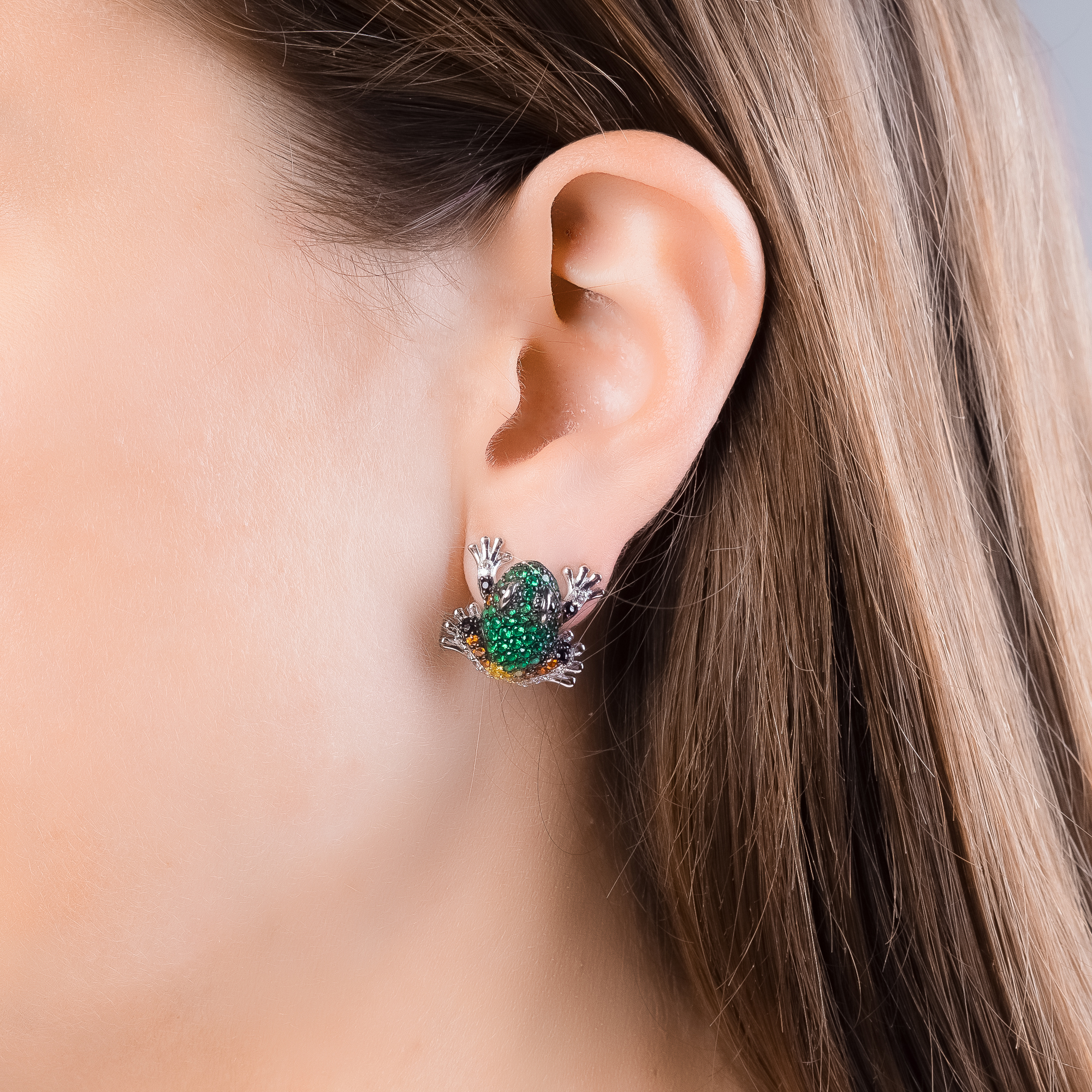 Die lebendige Pracht der Natur spiegelt sich in unseren Floppy Frosch Ohrringen wider. Hergestellt aus hochwertigem 925 Sterling Silber, sind diese Ohrringe eine Fusion aus künstlerischem Design und natürlicher Schönheit. Die bunte Vielfalt der Zirkonia-Steine in verschiedenen Farbtönen verleiht diesen Ohrringen eine lebendige Ausstrahlung. Von kräftigem Grün bis hin zu anderen leuchtenden Farben schaffen die Steine ein funkelndes Spiel des Lichts. Die Kombination aus rhodiniertem, geschwärztem und vergoldetem Silber verleiht diesen Ohrringen eine faszinierende Textur. Die Rhodium-Beschichtung sorgt nicht nur für strahlenden Glanz, sondern schützt die Ohrringe auch vor dem Anlaufen.