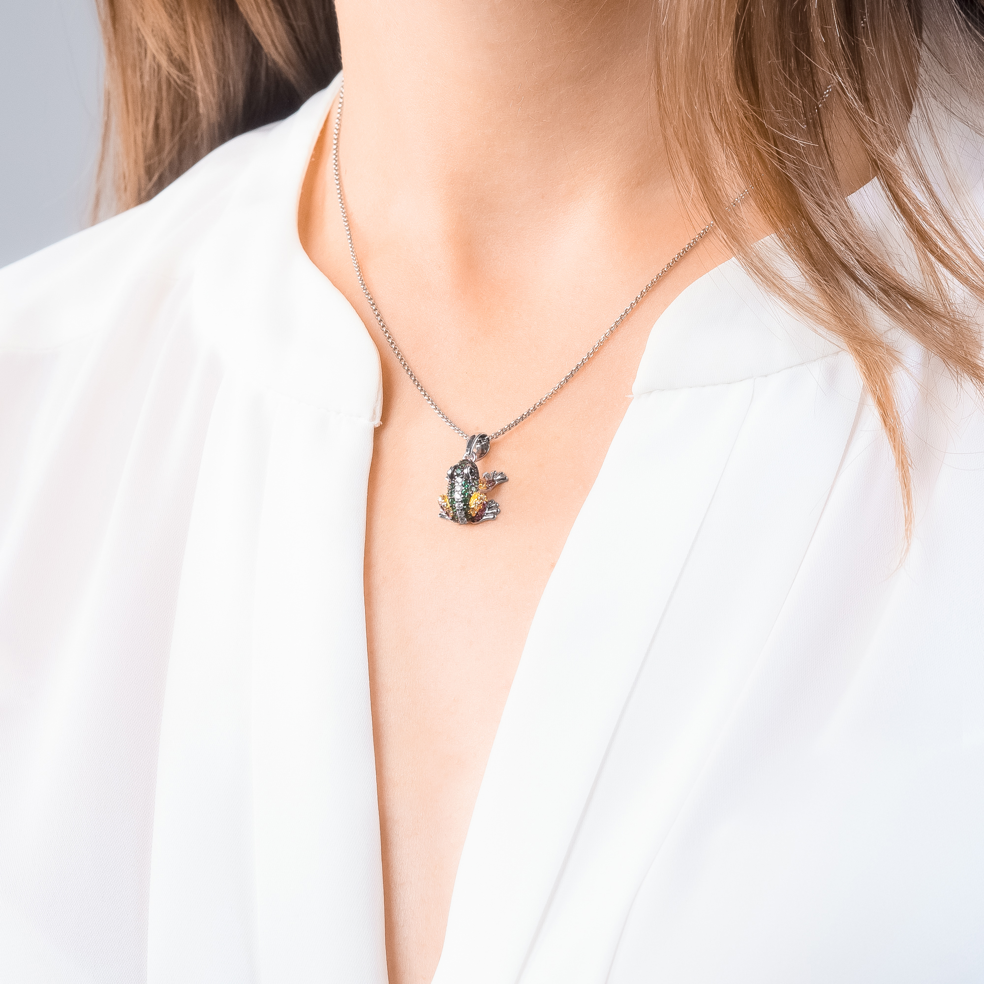 Der Freddy Frosch Anhänger ist ein hinreißendes Juwel, das die Schönheit der Natur auf stilvolle Weise einfängt. Hergestellt aus hochwertigem 925 Sterling Silber, wurde dieser Anhänger aufwändig rhodiniert, geschwärzt und vergoldet, um einen einzigartigen visuellen Effekt zu erzeugen. Die funkelnden Zirkonia-Steine in verschiedenen Farben, die den Anhänger verzieren, schimmern und glänzen im Licht. Sie fangen die Farben der Natur auf eine zauberhafte Art ein und verleihen dem Anhänger eine lebendige Ausstrahlung. Die Kombination aus geschwärztem, vergoldetem und rhodiniertem Silber verleiht dem Anhänger nicht nur eine visuelle Tiefe, sondern auch eine besondere Robustheit. Die Rhodium-Beschichtung sorgt dafür, dass der Anhänger seinen strahlenden Glanz über lange Zeit bewahrt.