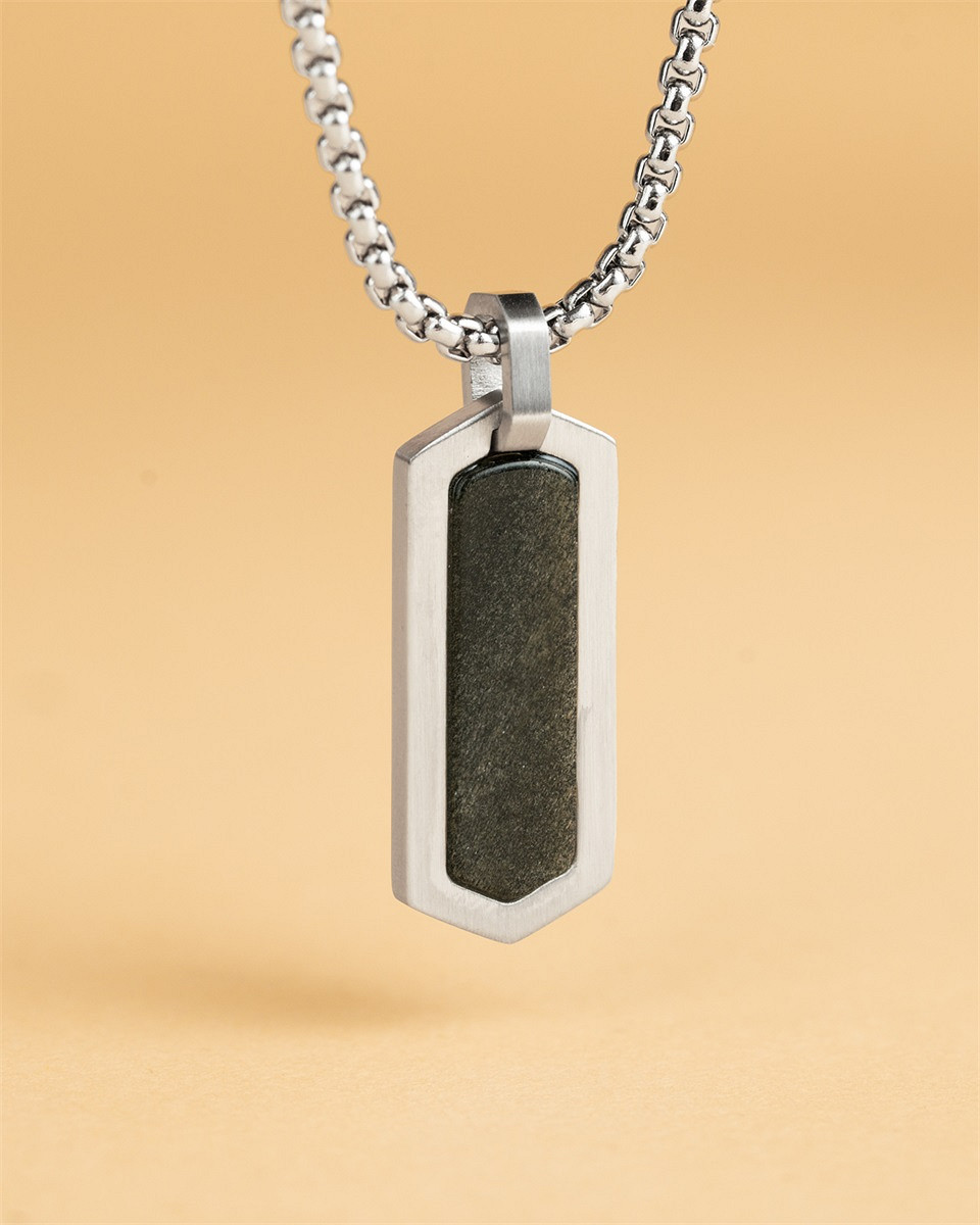 Die Roma Silver Green Halskette ist aus robustem Edelstahl gefertigt und mit grünem Obsidian verziert. Obsidian ist ein natürliches vulkanisches Glas, das beim schnellen Abkühlen von Lava entsteht und eine glatte, dunkelgrüne Oberfläche bildet. Obsidian ist für seine schützenden Eigenschaften bekannt und wird seit Jahrhunderten von verschiedenen Kulturen als mächtiges Schutzschild gegen negative Energie verwendet. Es wird angenommen, dass er hilft, den Geist zu klären.