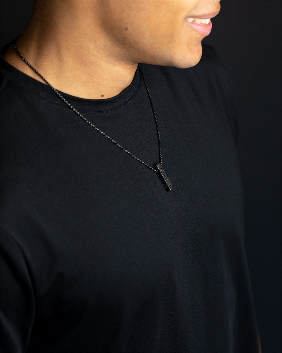 Die Tantum Black Lava-Halskette wird aus einem maßgefertigten Lavastein gefertigt. Lavastein gilt als Energieträger, weil er buchstäblich aus dem Mittelpunkt der Erde kommt. Dieser Stein kommt hauptsächlich in Asien vor und wird durch Magma bei Vulkanausbrüchen gebildet. Dieser Stein hat eine beruhigende und heilende Wirkung, die gleichzeitig intensive Energie freisetzt.
