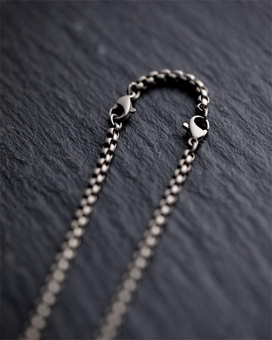 Die 3 mm Kette ist ebenfalls aus hochwertigem japanischem Titan gefertigt. Die Länge der Kette beträgt 58 cm und eine Verlängerungskette von 6 cm ist bei jeder Halskette enthalten.