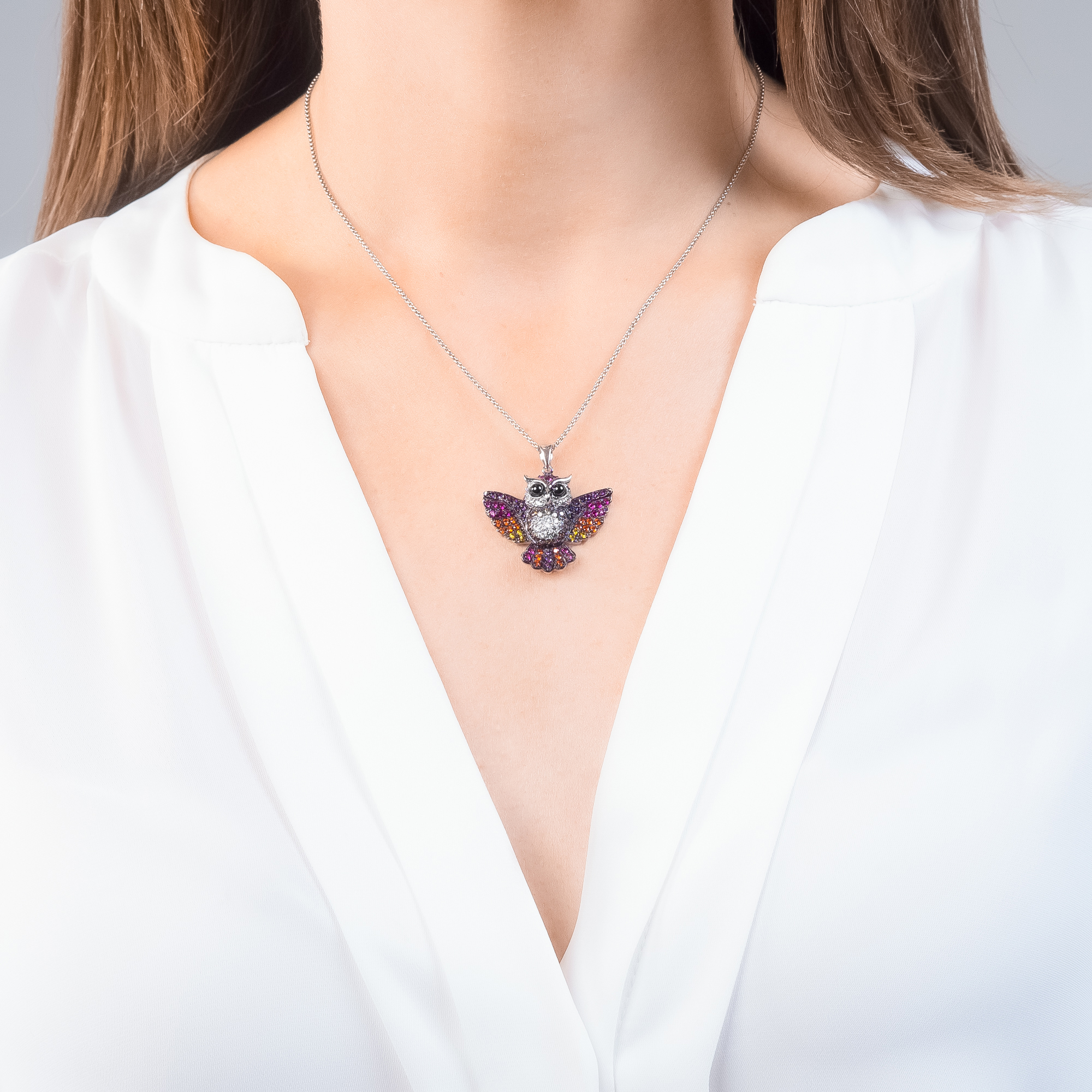 Lassen Sie Ihre Eleganz fliegen mit dem Helga Eulen Anhänger. Dieses exquisite Schmuckstück aus hochwertigem 925 Sterling Silber fängt die Schönheit der Eule in ihrer vollen Pracht ein. Die leuchtenden Zirkonia-Steine in lebendigem Lila und einer Palette von bunten Farben sind meisterhaft in den Anhänger eingefasst. Sie funkeln bei jedem Lichtstrahl und verleihen diesem Kunstwerk eine unverwechselbare Brillanz. Die Flügel der Eule sind in voller Pracht geöffnet, was ein Symbol für Freiheit und Abenteuerlust ist. Dieser Anhänger erinnert daran, den Moment zu nutzen und jeden Tag mit Neugier und Begeisterung zu erleben. Die Kombination aus rhodiniertem und geschwärztem Silber verleiht dem Anhänger eine einzigartige Textur und einen zeitlosen Glanz. Ob als Geschenk für einen besonderen Menschen oder als Statement für Ihren eigenen Stil - der Helga Eulen Anhänger ist eine Hommage an die Schönheit der Natur.