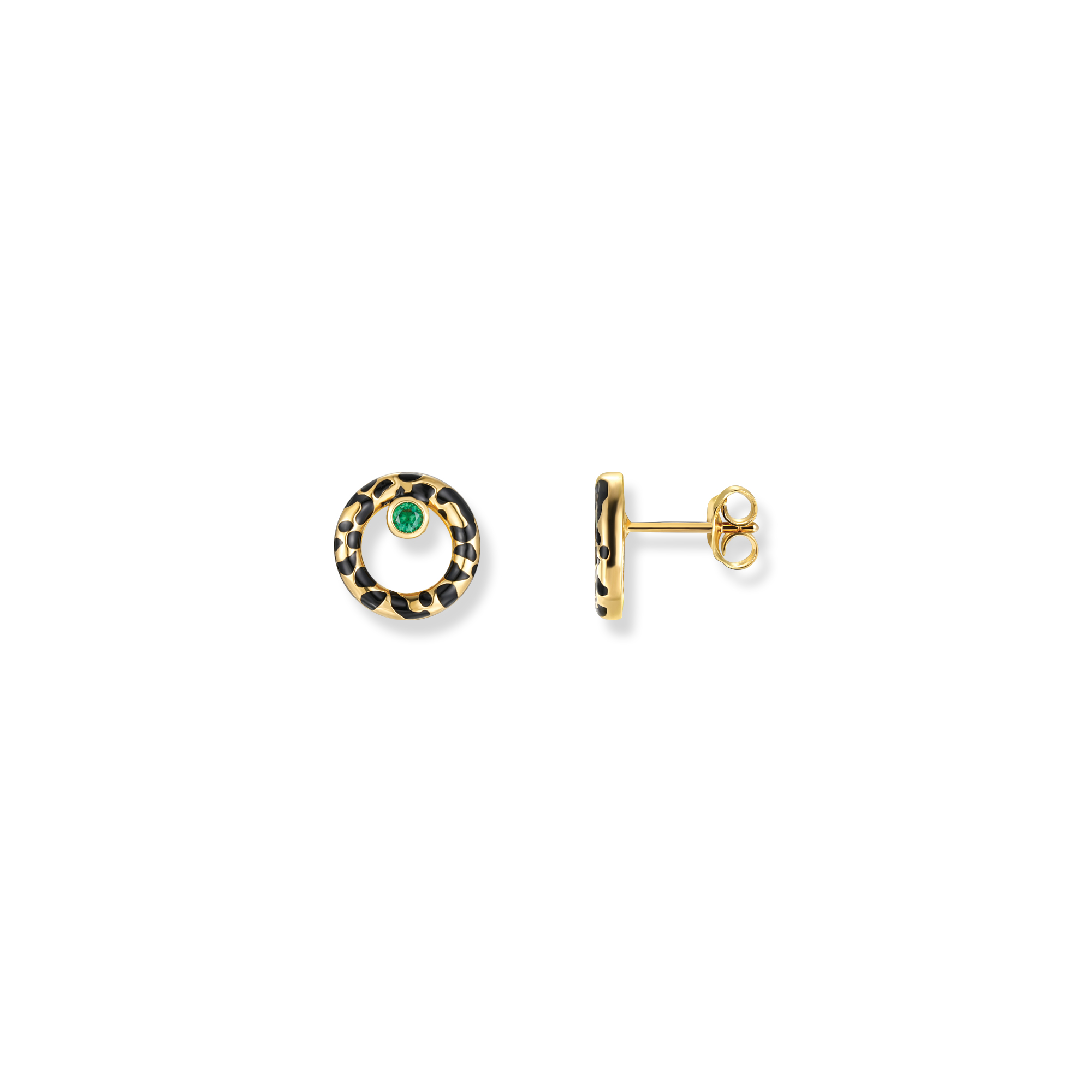 Entdecke die Kiani Leoparden Ohrringe, ein faszinierendes Schmuckstück aus 925 Sterling Silber, das mit einer 18 Karat Vergoldung für zusätzlichen Glanz veredelt ist. Diese auffälligen Ohrringe vereinen wilde Eleganz mit zeitlosem Design und sind ein echter Hingucker für jede Schmuckkollektion. Die runden Stecker sind kunstvoll mit einem funkelnden grünen Zirkonia besetzt, der das Licht einfängt und einen lebendigen Farbakzent setzt. Die einzigartige Leopardenstruktur in schwarzer Emaille verleiht den Ohrringen eine exotische und dennoch raffinierte Note, inspiriert von der wilden Schönheit der Natur. Diese Ohrringe sind nicht nur ein Ausdruck von Stil und Individualität, sondern auch ein Symbol für Stärke und Eleganz. Ideal als Geschenk für Liebhaberinnen von Naturmotiven oder als markantes Accessoire für besondere Anlässe, bieten die Kiani Leoparden Ohrringe die perfekte Kombination aus edlen Materialien und innovativem Design. Die hochwertige Verarbeitung garantiert Langlebigkeit und sorgt dafür, dass diese Ohrringe ihren Glanz und Charme über Jahre hinweg behalten.