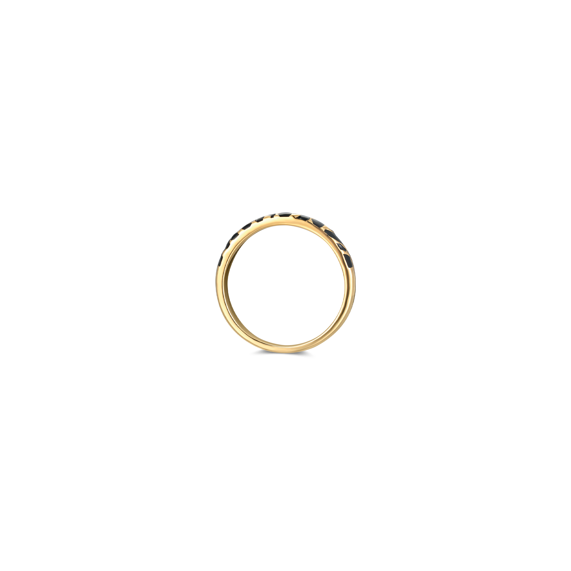 Der Kiani Leoparden Ring ist nicht nur ein Schmuckstück, sondern ein Ausdruck von raffinierter Eleganz. Gefertigt aus hochwertigem 925 Sterling Silber und mit einer 18 K Vergoldung veredelt, präsentiert sich dieser Ring als wahres Kunstwerk. Das markante Leopardenmuster, kunstvoll in schwarzer Emaille eingearbeitet, verleiht dem Ring eine kraftvolle Präsenz. Doch seine wahre Einzigartigkeit entfaltet der Kiani Leoparden Ring in Kombination mit den Profilringen Sunshine oder Moonshine. Diese sind mit strahlenden weißen Zirkonia geschmückt und bilden zusammen eine harmonische Symbiose aus wildem Muster und funkelndem Glanz. Doch auch solo getragen kommt der Kiani Leoparden Ring wunderbar zur Geltung. Er fügt sich perfekt in das Gesamtbild des Kiani Sets ein und ergänzt auf stilvolle Weise die Ausdruckskraft dieser einzigartigen Schmuckkollektion. Ganz gleich, ob als Teil des Ensembles oder als Solist – der Kiani Leoparden Ring vereint Kraft, Eleganz und Individualität auf meisterhafte Weise.