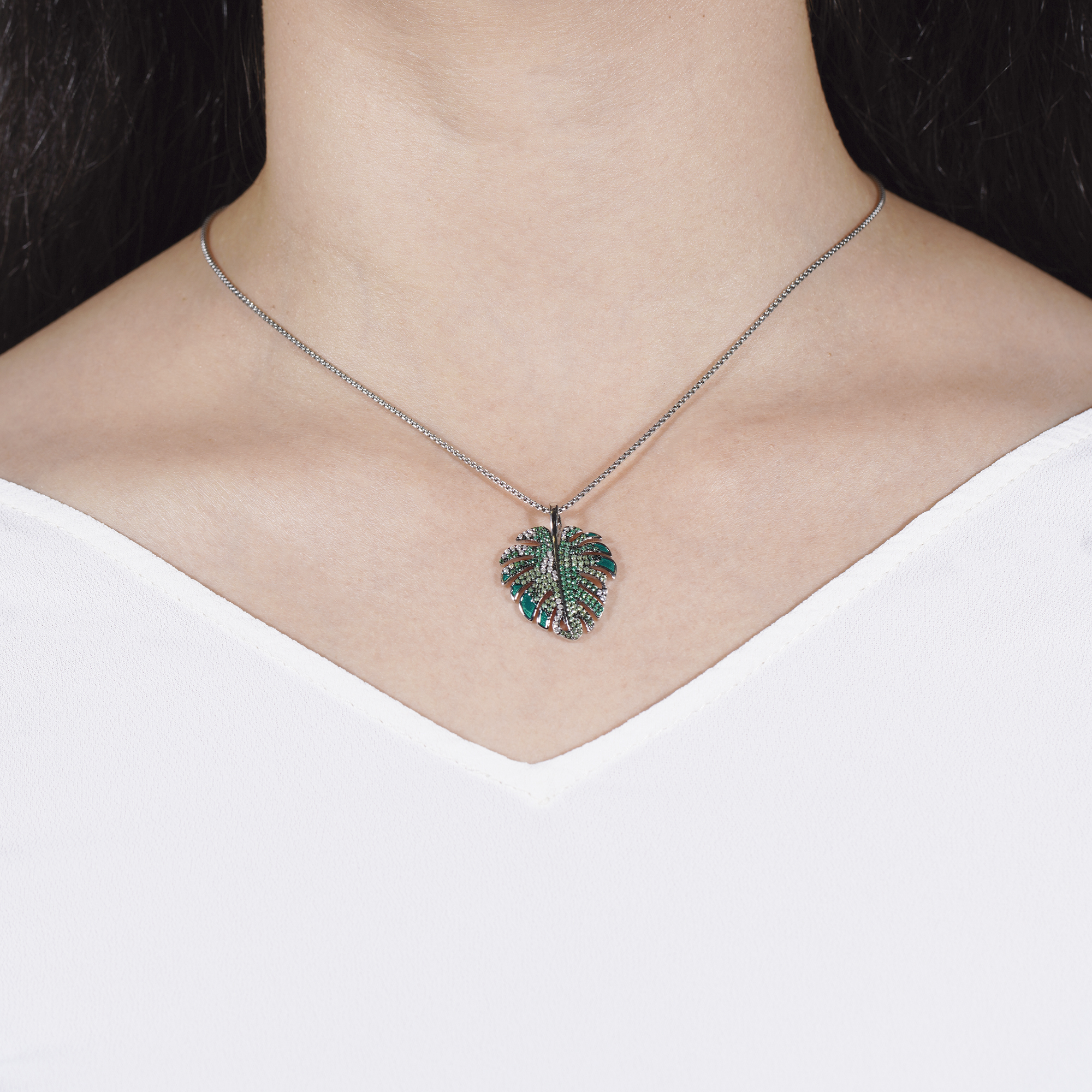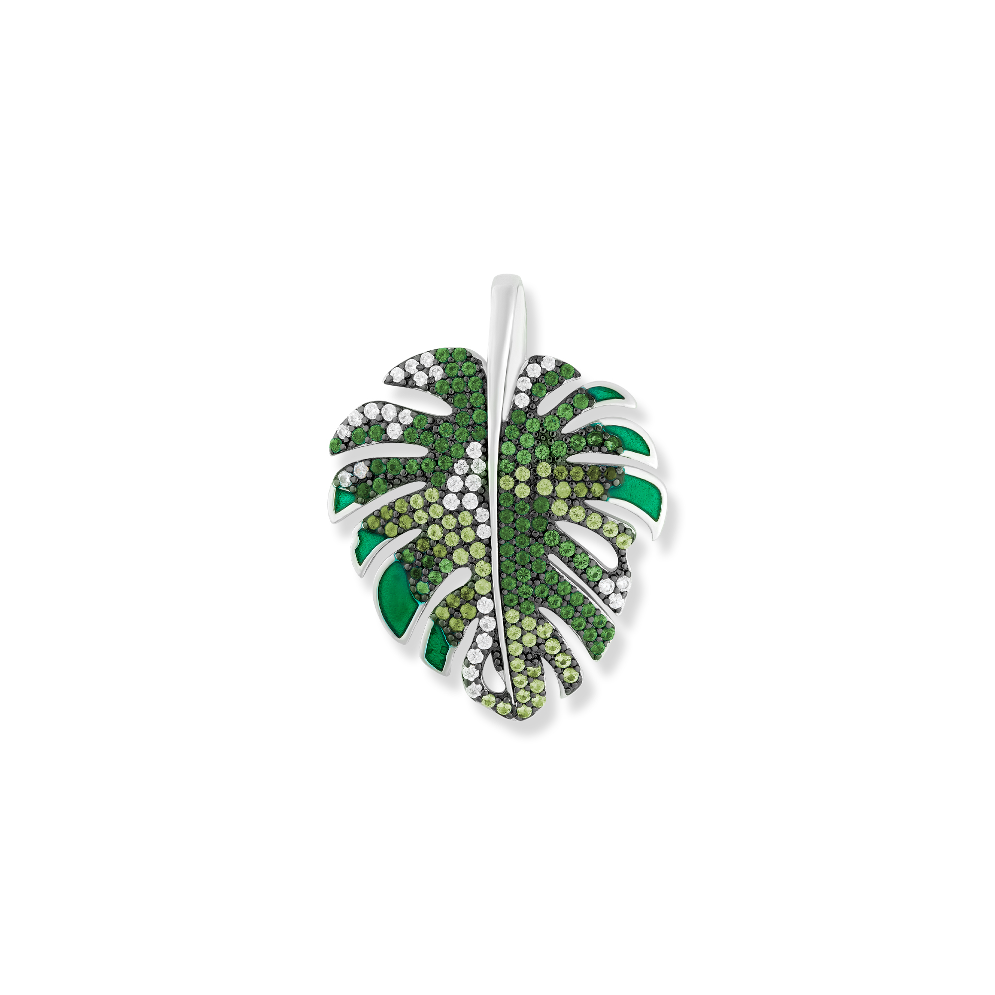 Entdecken Sie die Magie des Malu Monstera Blatt Anhängers und lassen Sie sich von seiner einzigartigen Schönheit verzaubern. Hergestellt aus hochwertigem 925 Sterling Silber und veredelt mit einer rhodinierten Oberfläche, strahlt dieser Anhänger eine zeitlose Eleganz aus. Die grünen Emaille-Details und die funkelnden grünen Zirkonia verleihen dem Anhänger eine lebendige Präsenz und erinnern an die frische und üppige Natur. Das detaillierte Design des Monstera Blattes fängt die Ästhetik und Anmut dieses tropischen Blattes perfekt ein. Mit seinem charmanten und einzigartigen Charakter ist dieser Anhänger ein Symbol für Individualität und Stil. Tragen Sie das Malu Monstera Blatt mit Stolz und lassen Sie Ihre Persönlichkeit erstrahlen. Ein wahrhaft besonderes Schmuckstück, das Sie in eine Welt voller Fantasie und Naturschönheit entführt.