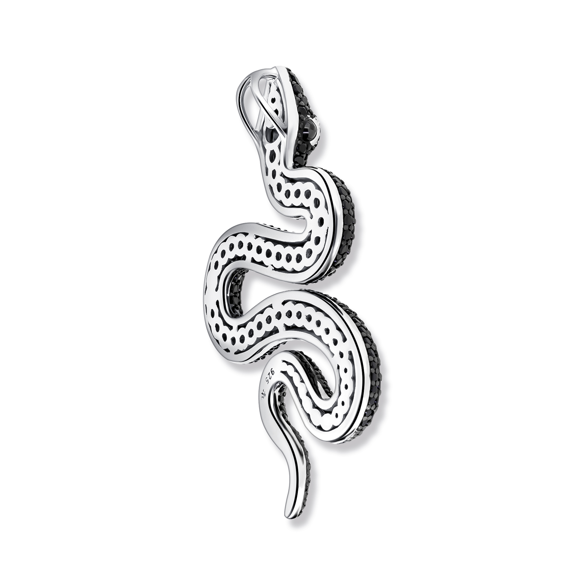 Der Mambo Schlangen Anhänger wurde Hergestellt aus hochwertigem 925 Sterling Silber, wurde dieser Anhänger sorgfältig rhodiniert, um ihm ein glänzendes Finish zu verleihen. Die geschwärzten schwarzen Zirkonia Steine, die den Körper der Schlange bedecken, verleihen dem Anhänger Tiefe und Intensität. Die glitzernden Zirkonia Steine fangen das Licht ein und lassen den Anhänger in einem geheimnisvollen Glanz erstrahlen. Der Mambo Schlangen Anhänger eignet sich perfekt als Statement-Stück für diejenigen, die das Außergewöhnliche lieben. Die subtile Symbolik der Schlange macht ihn auch zu einem tiefgreifenden Geschenk für jemanden, der sich in einer Phase der Veränderung oder des Wachstums befindet.