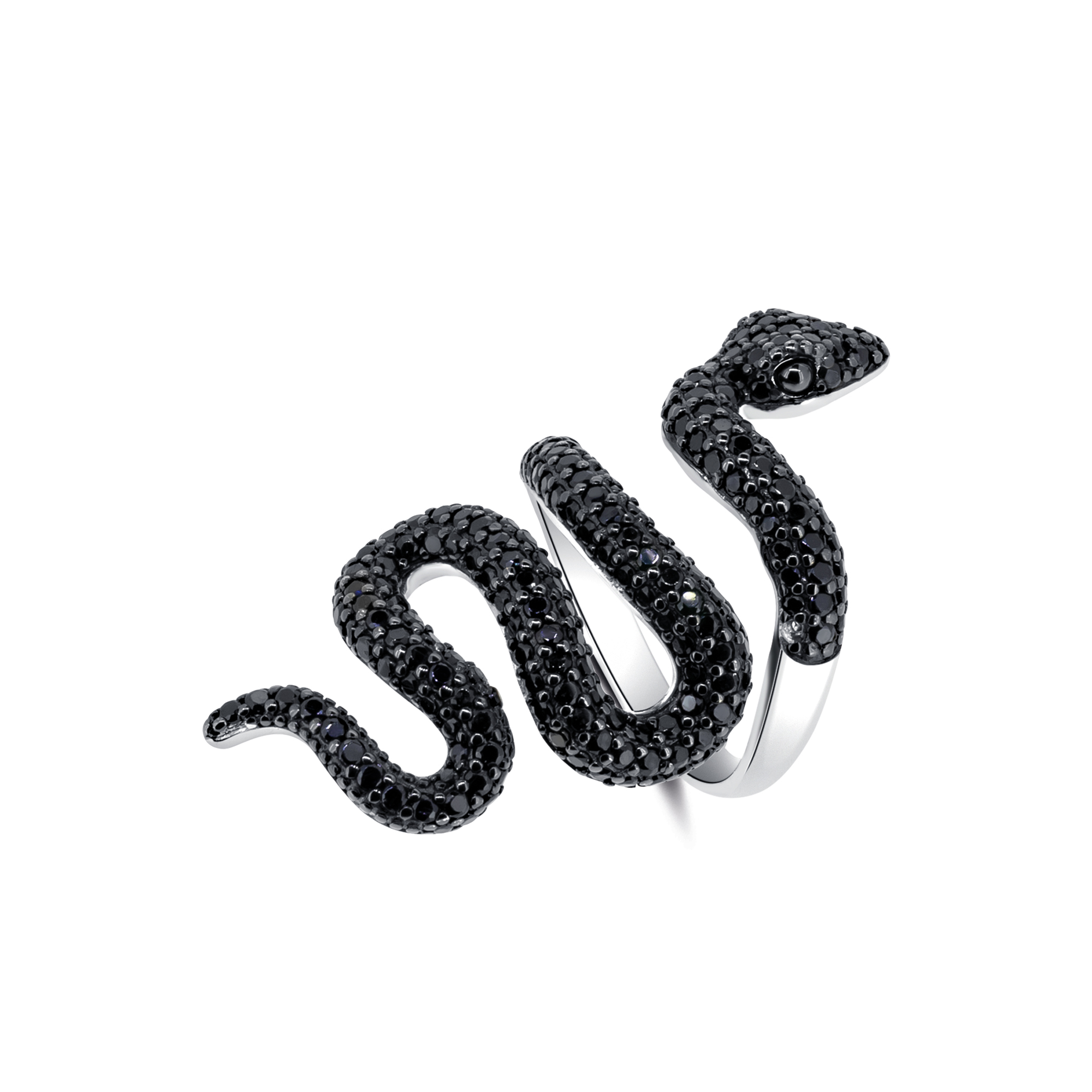 Der Mambo Schlangen Ring ist ein Schmuckstück, das Kraft und Raffinesse vereint. Die Schlange als Symbol steht für Transformation, Erneuerung und spirituelles Wachstum. Dieser Ring trägt diese Symbolik in einer wunderschönen Form. Hochwertiges 925 Sterling Silber bildet die Basis für diesen faszinierenden Ring. Durch die Rhodinierung erstrahlt er in einem zeitlosen Glanz. Die geschwärzten schwarzen Zirkonia Steine, die den Körper der Schlange auf dem Ring zieren, verleihen ihm eine geheimnisvolle Tiefe und Intensität. Die Zirkonia Steine glitzern im Licht und erzeugen ein hypnotisierendes Funkeln. Die verstellbare Ringschiene sorgt dafür, dass der Mambo Schlangen Ring perfekt an den Finger angepasst werden kann. So kann er bequem getragen werden und bleibt dennoch ein Blickfang.