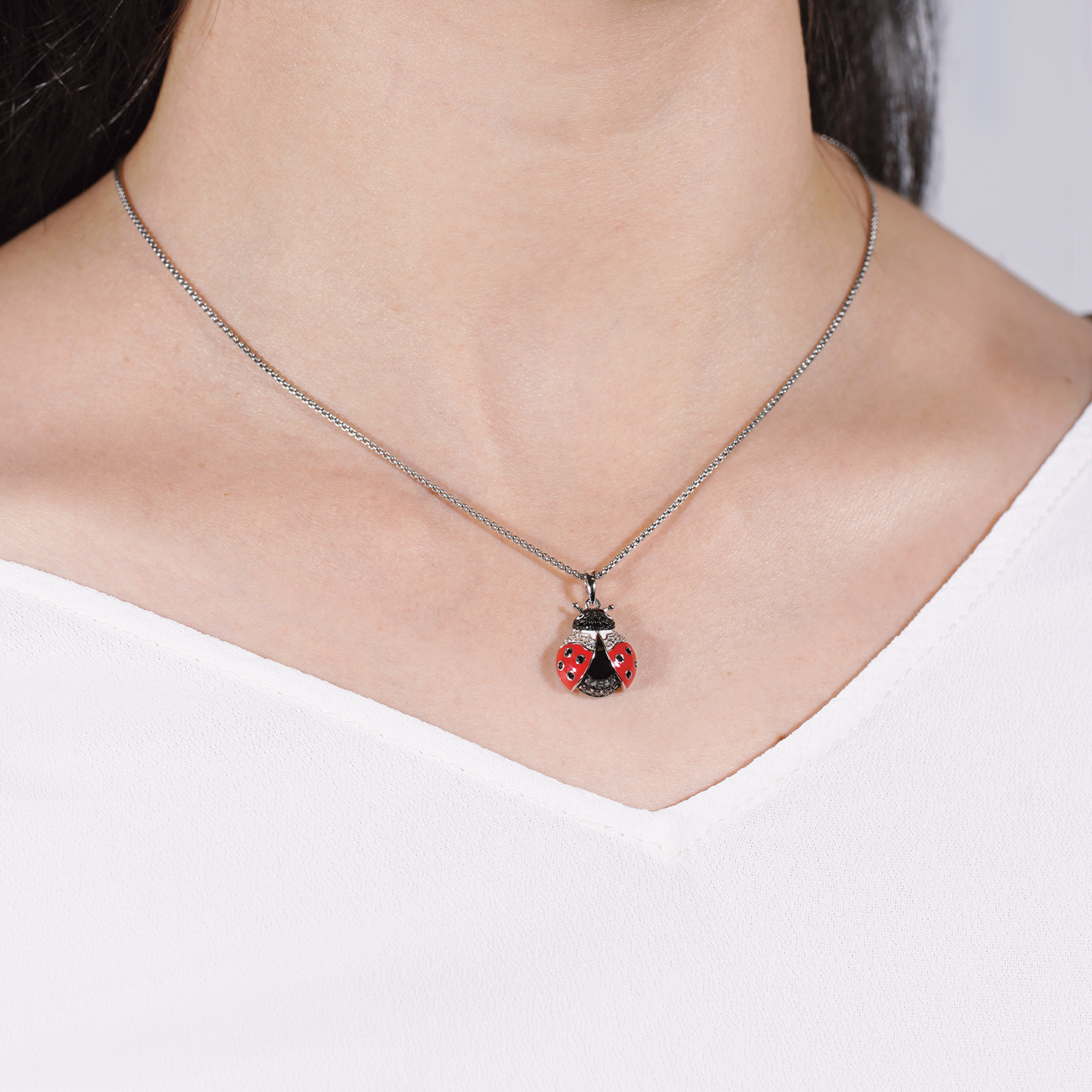 Der Maria Marienkäfer Anhänger ist weit mehr als ein Schmuckstück – er ist ein Ausdruck von Glück und Detailverliebtheit. Die roten Flügel schmücken sich mit vier subtilen schwarzen Emaille Punkten auf dem Rot, welche die charakteristische Erscheinung des Marienkäfers hervorheben. Der Kopf des Marienkäfers ist in tiefem Schwarz Emaille gestaltet, was dem Design eine anmutige Raffinesse verleiht. Die Augen funkeln aus strahlendem Weiß Emaille, was dem Anhänger eine bezaubernde Lebendigkeit verleiht. Dieser Anhänger ist mehr als ein einfaches Schmuckstück – er trägt eine Botschaft des Glücks und erinnert uns daran, die Freude in den kleinen Dingen zu finden. Tragen Sie den Maria Marienkäfer Anhänger bei besonderen Anlässen oder im Alltag, um Ihrer Persönlichkeit einen verspielten und glücklichen Touch zu verleihen. Die Liebe zum Detail und die gekonnte Kombination aus den Farben Rot, Schwarz und Weiß machen diesen Anhänger zu einem echten Blickfang. Ganz gleich, wie Sie sich entscheiden, dieser Anhänger wird nicht nur Ihre Verbundenheit zur Natur zeigen, sondern auch Ihre positive Einstellung zum Leben unterstreichen – eine ständige Erinnerung daran, das Glück in den kleinsten Augenblicken zu entdecken.