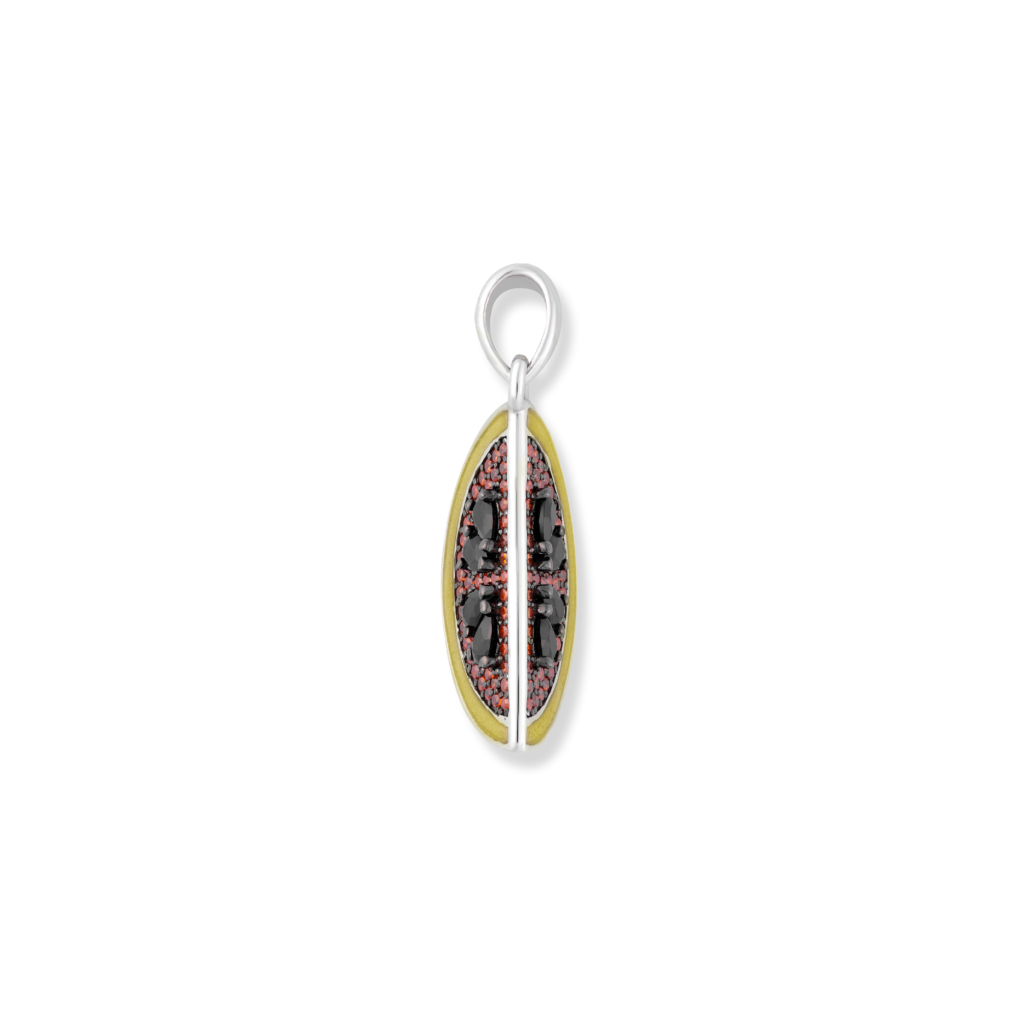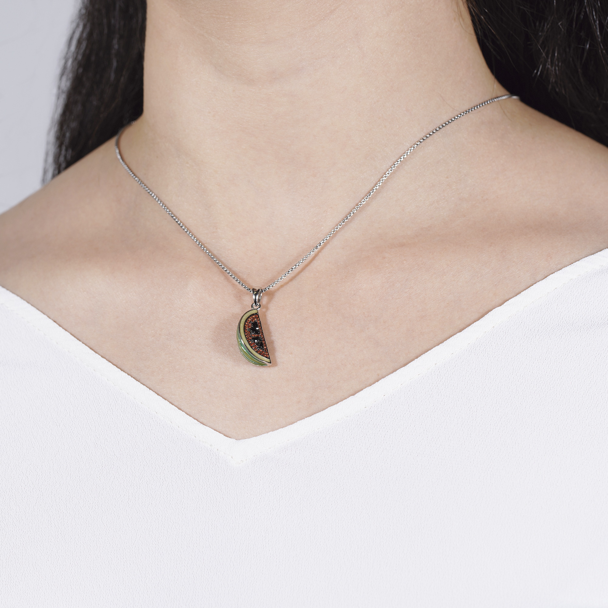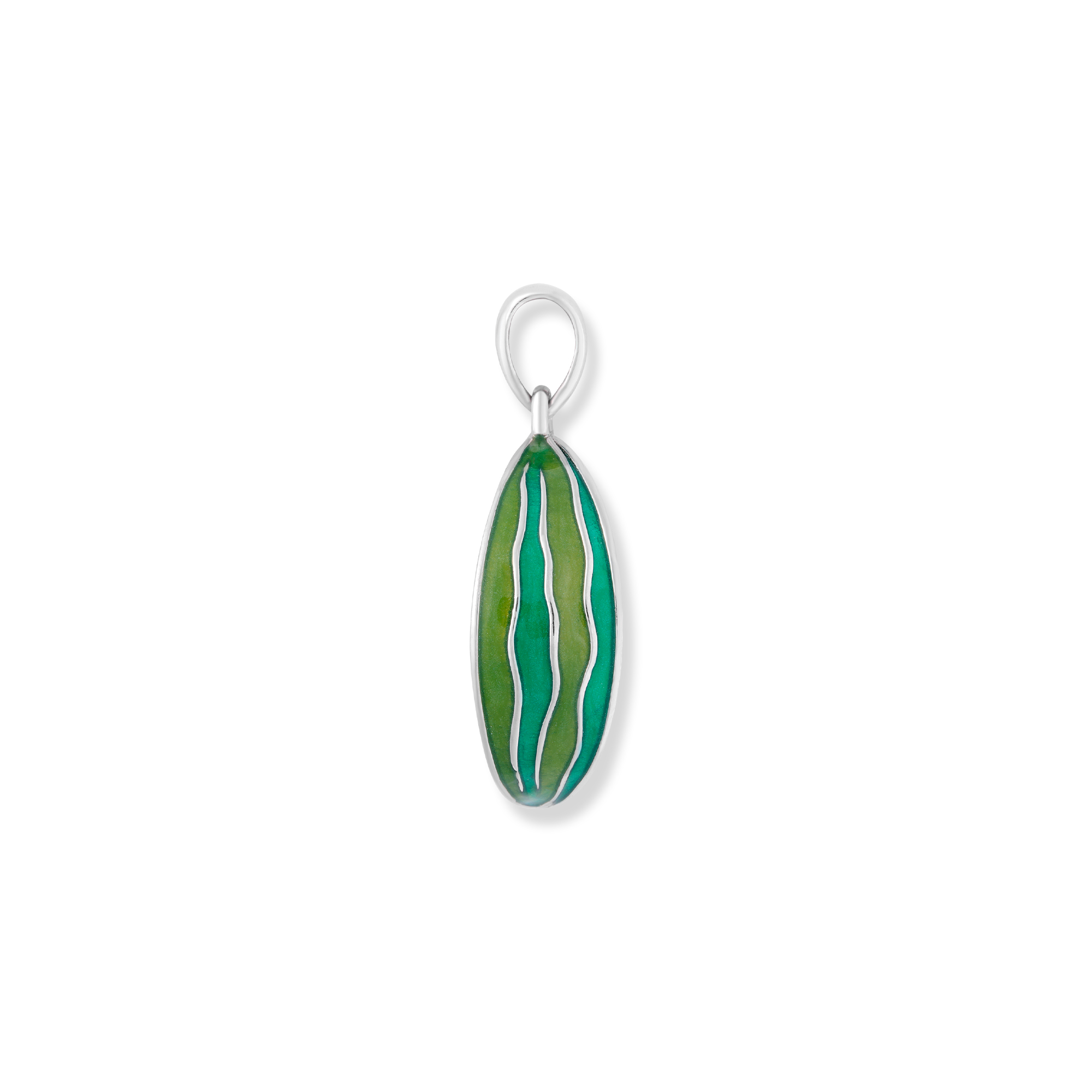 Der Melo Melonen Anhänger ist ein frischer und sommerlicher Anhänger, der aus hochwertigem 925 Sterling Silber gefertigt und mit einer glänzenden Rhodium-Beschichtung versehen wurde. Das Design des Anhängers wird durch die lebendige grüne Emaille hervorgehoben, die die Frische und Natürlichkeit einer saftigen Melone symbolisiert. Die rötlich gefassten Zirkonia-Steine verleihen dem Anhänger einen Hauch von Funkeln und sorgen für einen eleganten Akzent. Mit seinem charmanten und verspielten Erscheinungsbild ist der Melo Melonen Anhänger ein perfektes Accessoire, um Ihren Sommer-Look zu ergänzen und Ihre Liebe zur Natur und zum fruchtigen Genuss auszudrücken. Tragen Sie diesen Anhänger mit Stolz und zeigen Sie Ihre Leidenschaft für stilvollen und trendigen Schmuck. Genießen Sie den Sommer mit diesem erfrischenden und einzigartigen Schmuckstück, das Ihre Persönlichkeit und Ihren individuellen Stil zum Ausdruck bringt.
