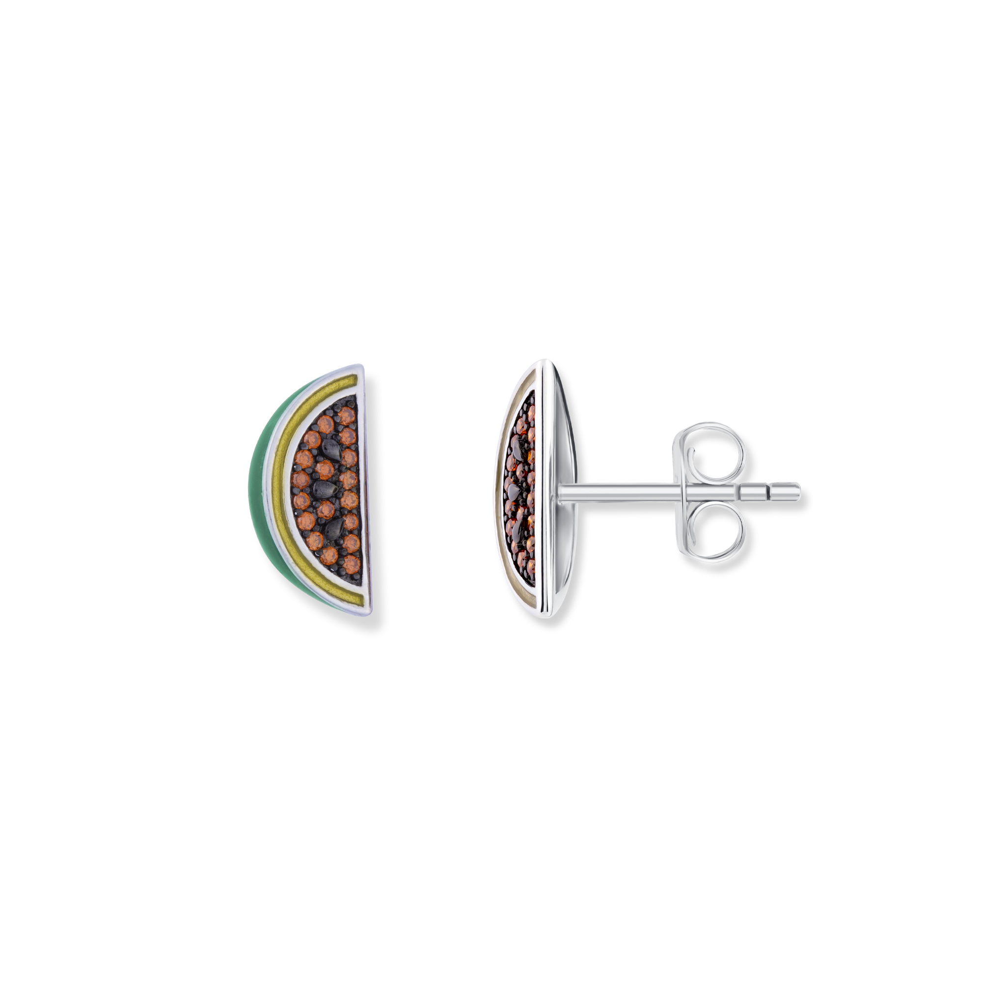 Die Melo Melonen Ohrringe sind ein bezauberndes Paar aus hochwertigem 925 Sterling Silber, das mit einer glänzenden Rhodium-Beschichtung veredelt wurde. Die Ohrringe zeichnen sich durch ihr liebevolles und süßes Design aus. Das lebendige Grün der Emaille verleiht ihnen eine frische und natürliche Ausstrahlung, während die rötlich gefassten Zirkonia-Steine einen subtilen Hauch von Funkeln und Eleganz hinzufügen. Diese Ohrringe sind das perfekte Accessoire, um Ihrem Look eine verspielte Note zu verleihen und Ihre Begeisterung für fruchtige Genüsse zum Ausdruck zu bringen. Tragen Sie die Melo Melonen Ohrringe mit Stolz und zeigen Sie Ihre einzigartige Persönlichkeit und Ihren individuellen Stil. Diese Ohrringe sind nicht nur ein modisches Statement, sondern auch ein Ausdruck Ihrer Liebe zur Natur und zur Freude am süßen Leben. Lassen Sie sich von ihrem Charme verzaubern und genießen Sie die verspielte Eleganz, die sie Ihrem Outfit verleihen.