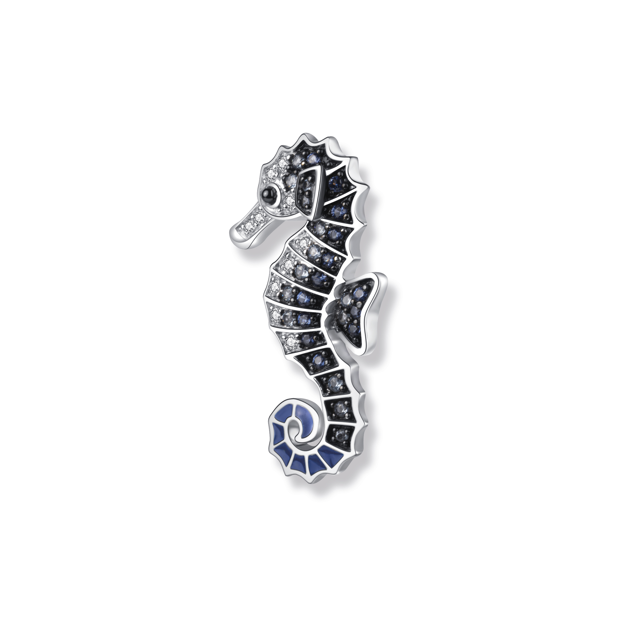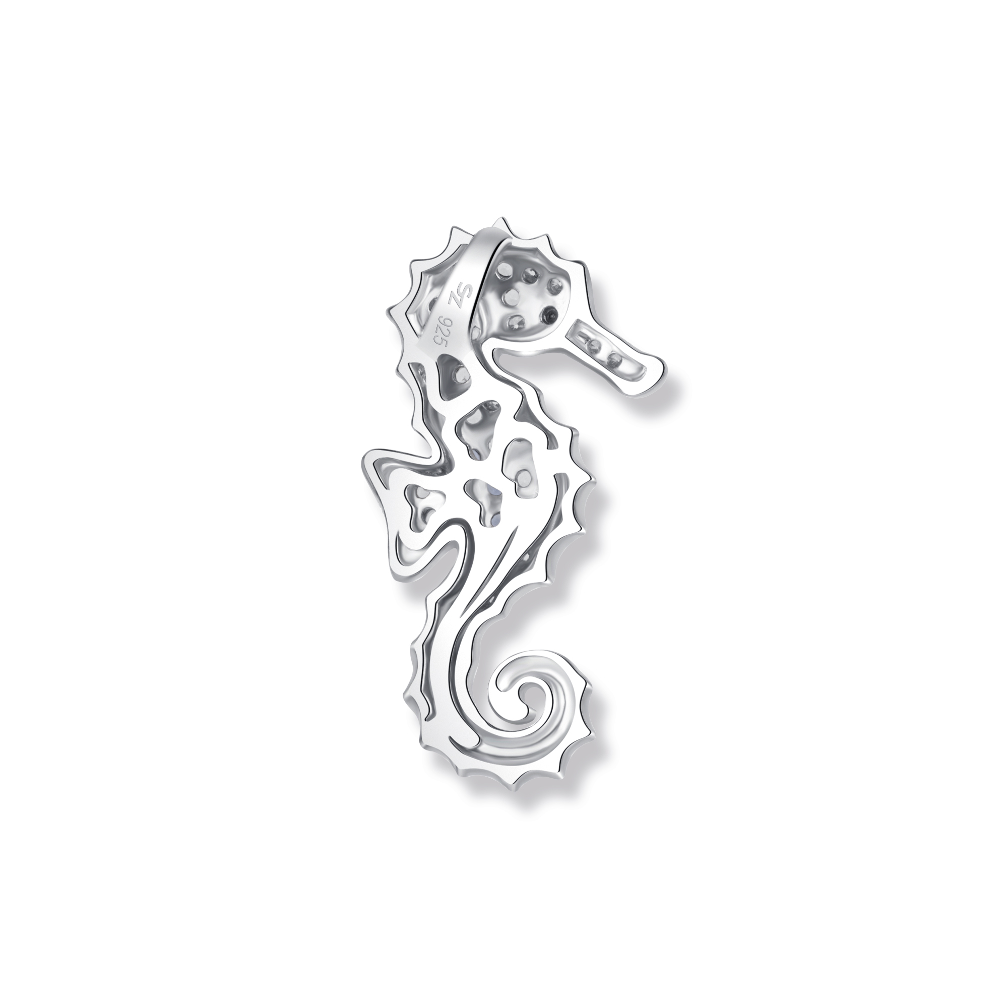 Tauchen Sie ein in die faszinierende Welt des Meeres mit dem Mike Seepferdchen Anhänger. Dieses Schmuckstück ist eine wunderschöne Symphonie aus Meeresfarben und Eleganz. Die rechte Hälfte des Anhängers wird von funkelnden weißen Zirkonia geziert, die an die schimmernden Wellen des Ozeans erinnern. Auf der linken Hälfte glitzern blaue Zirkonia wie das tiefblaue Meer, das uns in seinen Bann zieht.