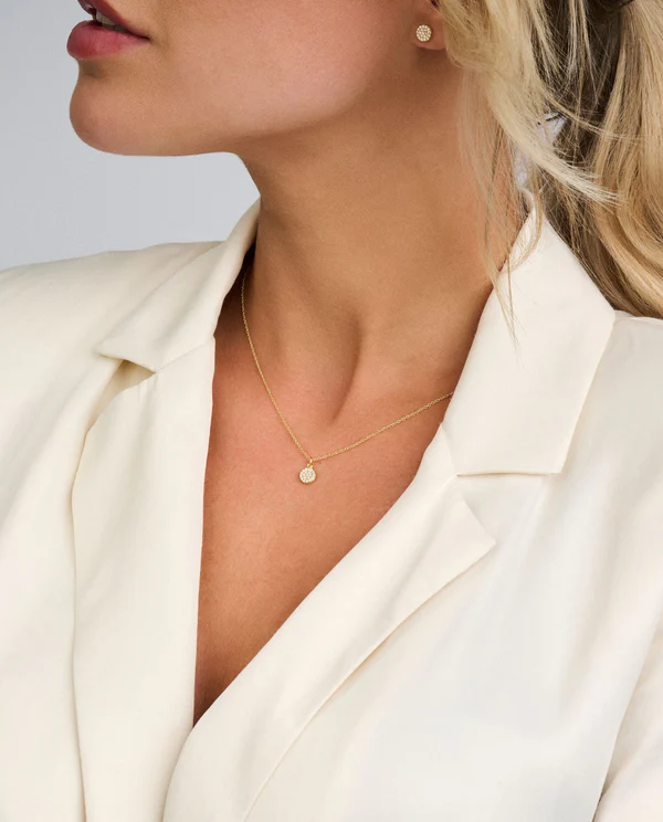 Diese feine Mini Halskette ist aus poliertem Sterlingsilber gefertigt und kann in den Längen 42/45 cm eingestellt werden. Der Anhänger ist als kleine runde Platte gestaltet, besetzt mit weißen facettengeschliffenen Zirkonia, was ein schönes und einfaches Design erzeugt. Der Anhänger ist 0,5 cm groß.