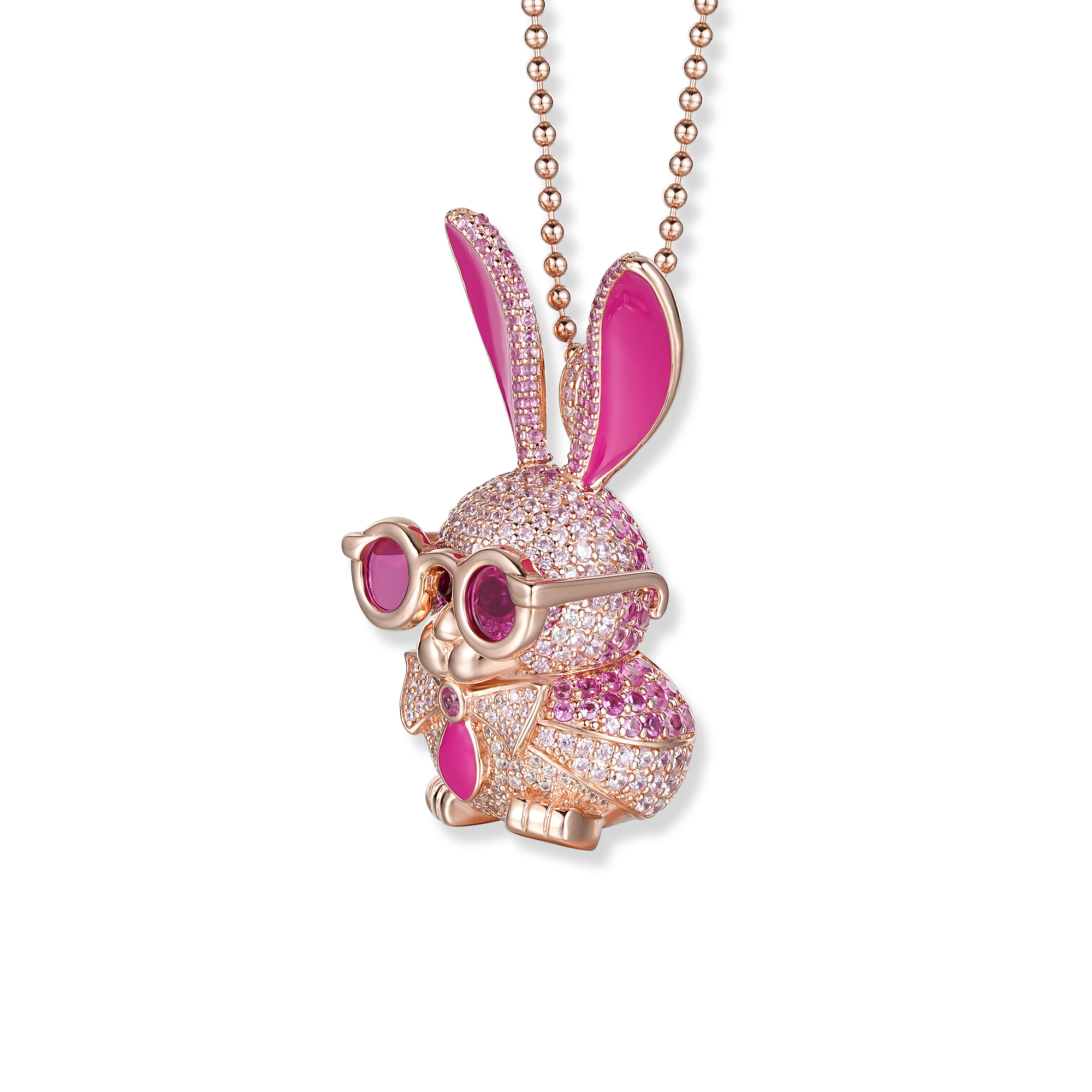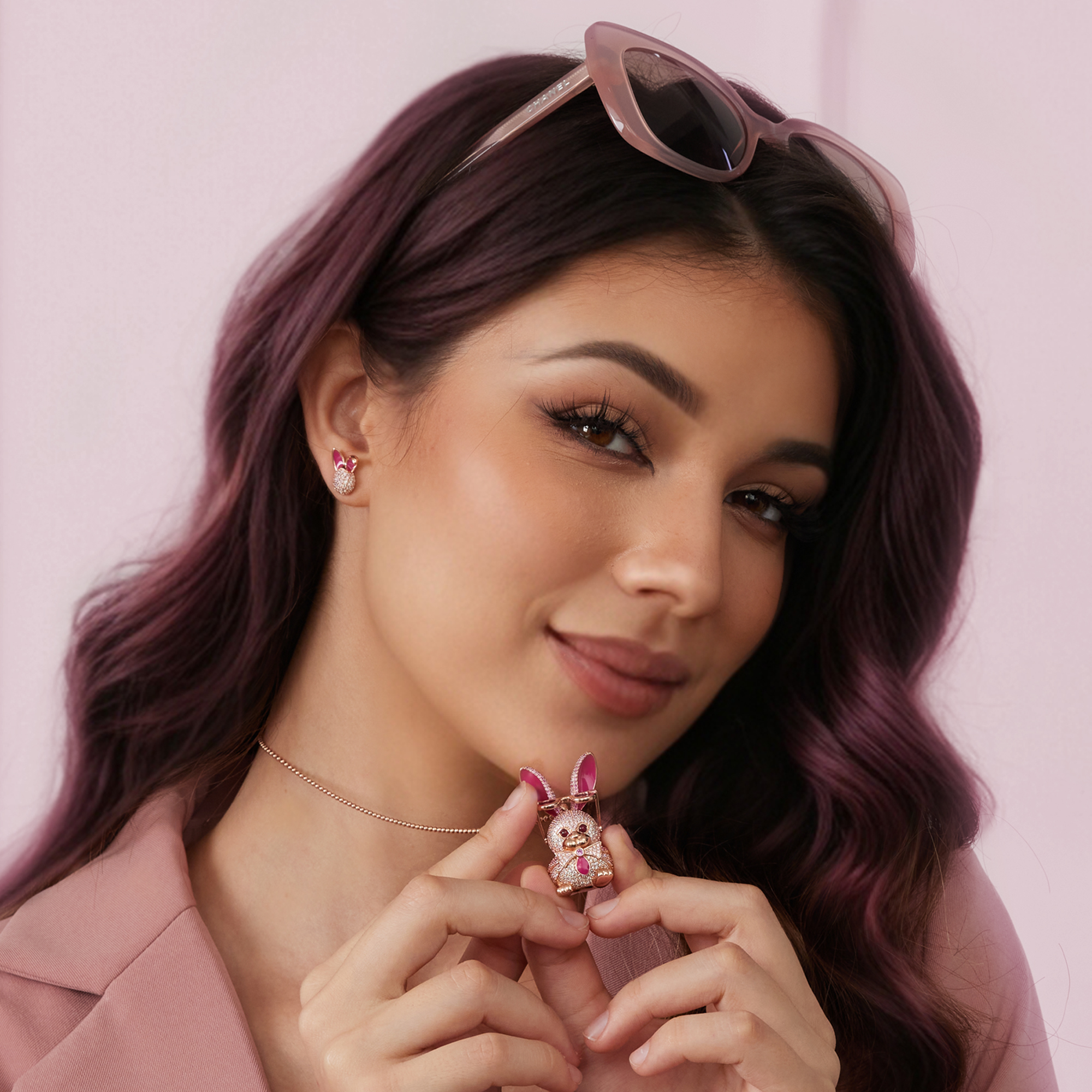 Designers Statement: Ich freue mich, euch meine künstlerische Schöpfung vorstellen zu dürfen – Ms. Roxy, INHORGENTA Design Award Gewinnerin, der Kategorie: Fashion Jewellry of the Year! Ms. Roxy ist eine lebendige Hommage an Einzigartigkeit und Glamour. Ms. Roxy, das kleine Häschen, ist das Abbild meiner Bestrebungen, dem Leben mit Eleganz und Selbstbewusstsein zu begegnen. Ihr mutiger Schritt nach vorne symbolisiert persönlichen Fortschritt und die Bereitschaft, sich den Herausforderungen des Lebens zu stellen. Das hinreißende Häschen Ms. Roxy ist aus hochwertigem Sterling Silber gefertigt und mit einer glänzenden 18K Rosévergoldung veredelt. Ihre Augen funkeln wie Sterne, dank der 399 funkelnden Zirkonia, die sie zieren. Die bewegliche Sonnenbrille, ein verspieltes Detail, ist meine künstlerische Antwort darauf, wie wir das Leben betrachten. Mal durch die rosarote Brille aus synthetischem Rubin, um die Welt in einem anderen Licht zu sehen, mal unverfälscht und authentisch. Ms. Roxy, das kleine Häschen, ist für mich nicht nur ein Schmuckstück, sondern eine lebendige Erinnerung daran, dass wahre Schönheit in der Vielfalt liegt. Ich bin zufrieden mit dieser Kreation und kann mir vorstellen weitere entzückende Tierfreunde wie Ms. Roxy zu entwerfen.