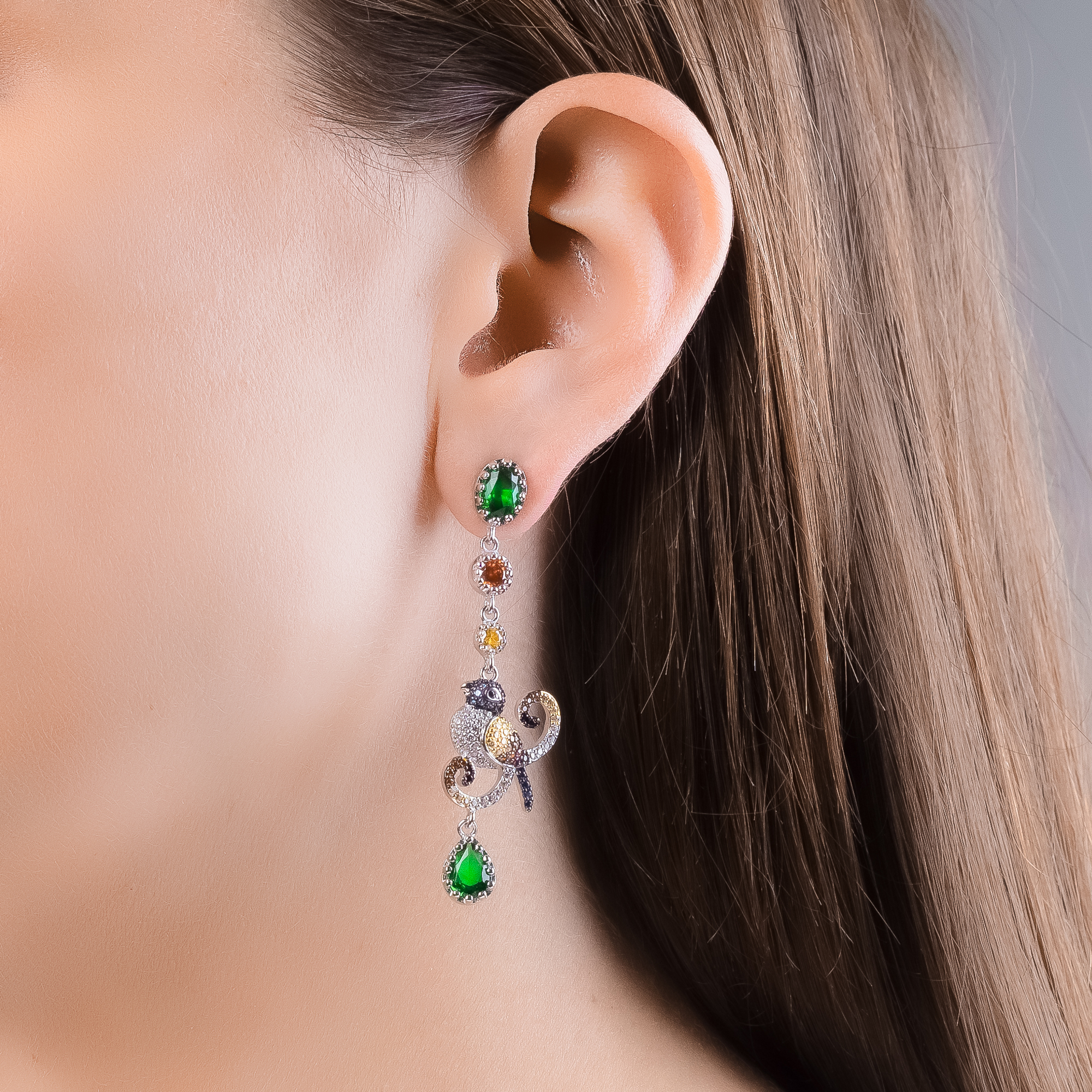 Tauchen Sie ein in ein Paradies der Farben mit den Nachti Paradiesvogel Ohrringen. Diese einzigartigen Ohrringe aus hochwertigem 925 Sterling Silber sind ein Fest für die Sinne und ein Statement der Freude. Die Kombination aus Rhodinierung, Geschwärztem und Vergoldung verleiht den Ohrringen eine faszinierende Tiefe. Die Zirkonia Steine in verschiedenen bunten Farben funkeln im Licht und erzeugen ein strahlendes Funkeln, das den Blick auf sich zieht. Die hängende Anordnung an mehreren bunten Steinen verleiht den Ohrringen Bewegung und einen Hauch von Eleganz.