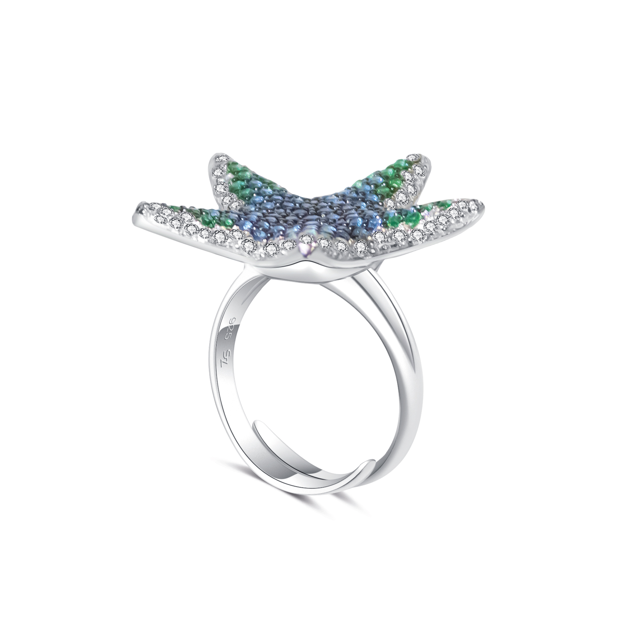 Tauchen Sie ein in die Welt des Ozeans mit dem bezaubernden Nelly Seestern Ring. Dieser Ring aus hochwertigem 925 Sterling Silber wurde mit viel Liebe zum Detail gestaltet. Das rhodinierte und geschwärzte Silber verleiht dem Ring eine zeitlose Eleganz und dient als stilvoller Hintergrund für die Zirkonia Steine in Blau und Weiß, die wie das schillernde Wasser des Meeres und der funkelnde Sandstrand wirken. Kombinieren Sie den Nelly Seestern Ring mit dem Nelly Seestern Anhänger, um ein komplettes Set zu schaffen, das die Magie des Ozeans in Ihrem Look zum Ausdruck bringt.
