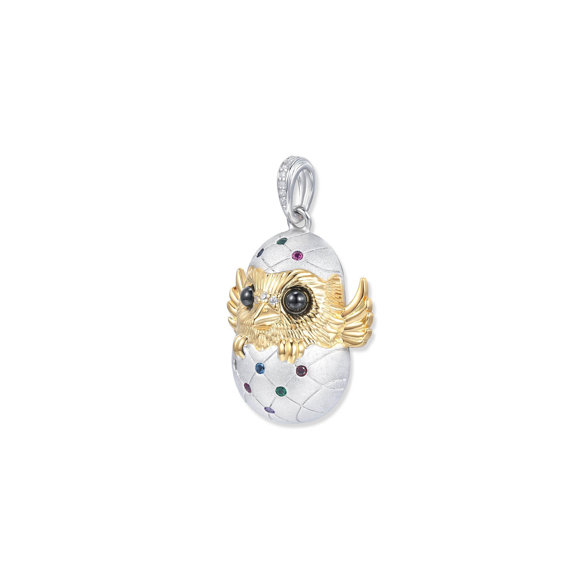 Der Pip Küken Anhänger ist ein entzückendes Schmuckstück, das mit seiner detailreichen Gestaltung und hochwertigen Verarbeitung besticht. Gefertigt aus 925er Sterling Silber, kombiniert er eine rhodinierte Oberfläche der Schale mit einer strahlenden 18k Vergoldung des Kükenkörpers, die diesem Schmuckstück eine luxuriöse Note verleiht. Die Schale ist mit funkelnden farbigen Zirkonia besetzt, die ein fröhliches und lebendiges Design schaffen. Die niedlichen Details des Kükenkopfs, wie die glänzenden Augen und die fein gearbeiteten Flügel, verleihen dem Anhänger einen verspielten Charme, der sowohl für besondere Anlässe als auch für den Alltag geeignet ist. Als Teil der exklusiven SEINERZEIT Flora & Fauna Kollektion vereint der Pip Küken Anhänger die Schönheit der Natur mit exquisiter Handwerkskunst. Dieses Schmuckstück ist nicht nur ein perfektes Geschenk für Tierliebhaber und Schmuckfans, sondern auch ein Highlight für jede Schmuckkollektion. Die robuste Verarbeitung aus Sterling Silber sorgt für Langlebigkeit, während die Kombination aus Rhodium und 18k Vergoldung Eleganz und Qualität garantiert.