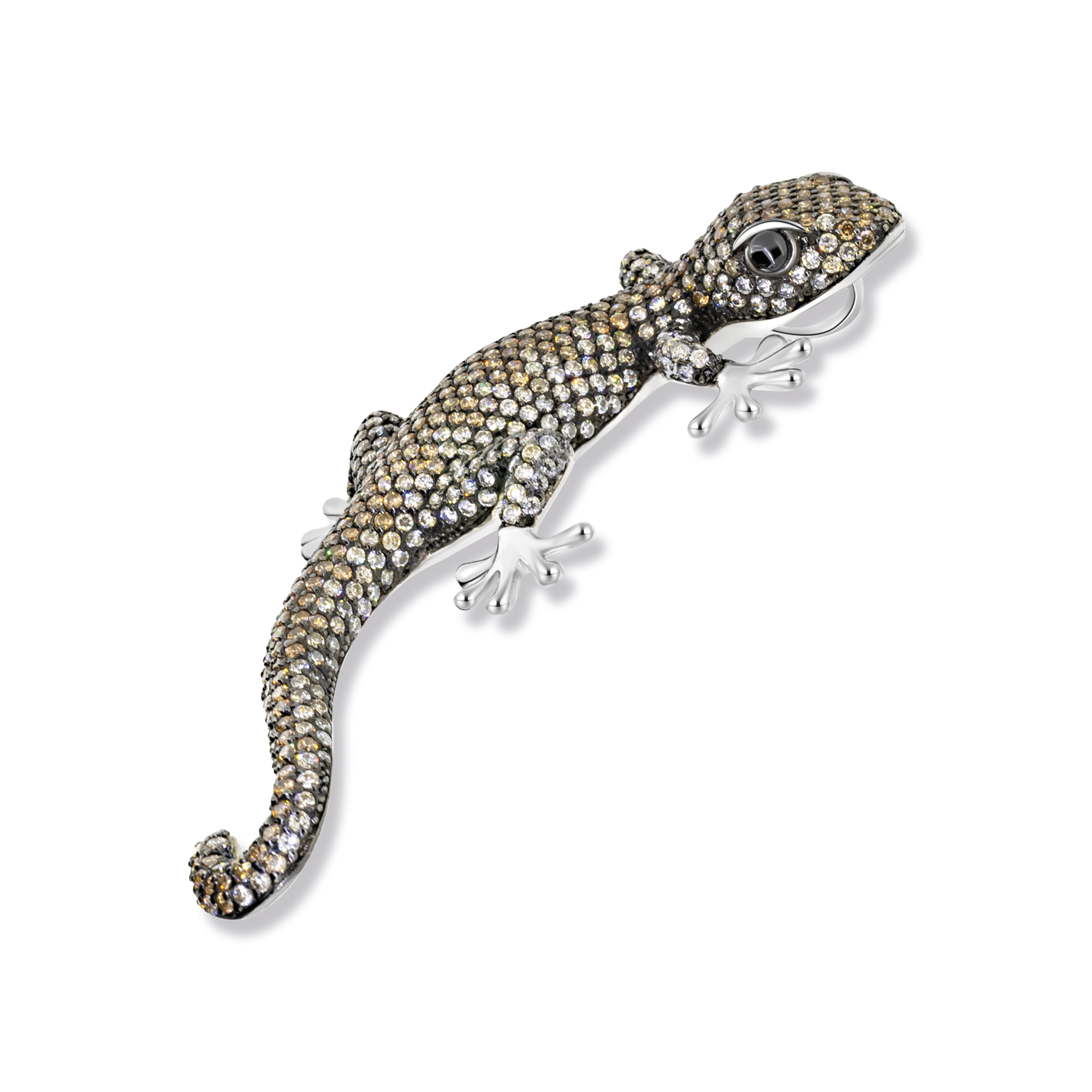Der Ralf Salamander Anhänger/Brosche ist nicht nur ein Statement-Schmuckstück, sondern auch äußerst vielseitig. Die kunstvoll platzierten braunen und weißen Zirkonia Steine betonen die einzigartigen Merkmale eines Salamanders. Das rhodinierte und geschwärzte Silber verleiht dem Schmuckstück eine markante und kraftvolle Ausstrahlung.